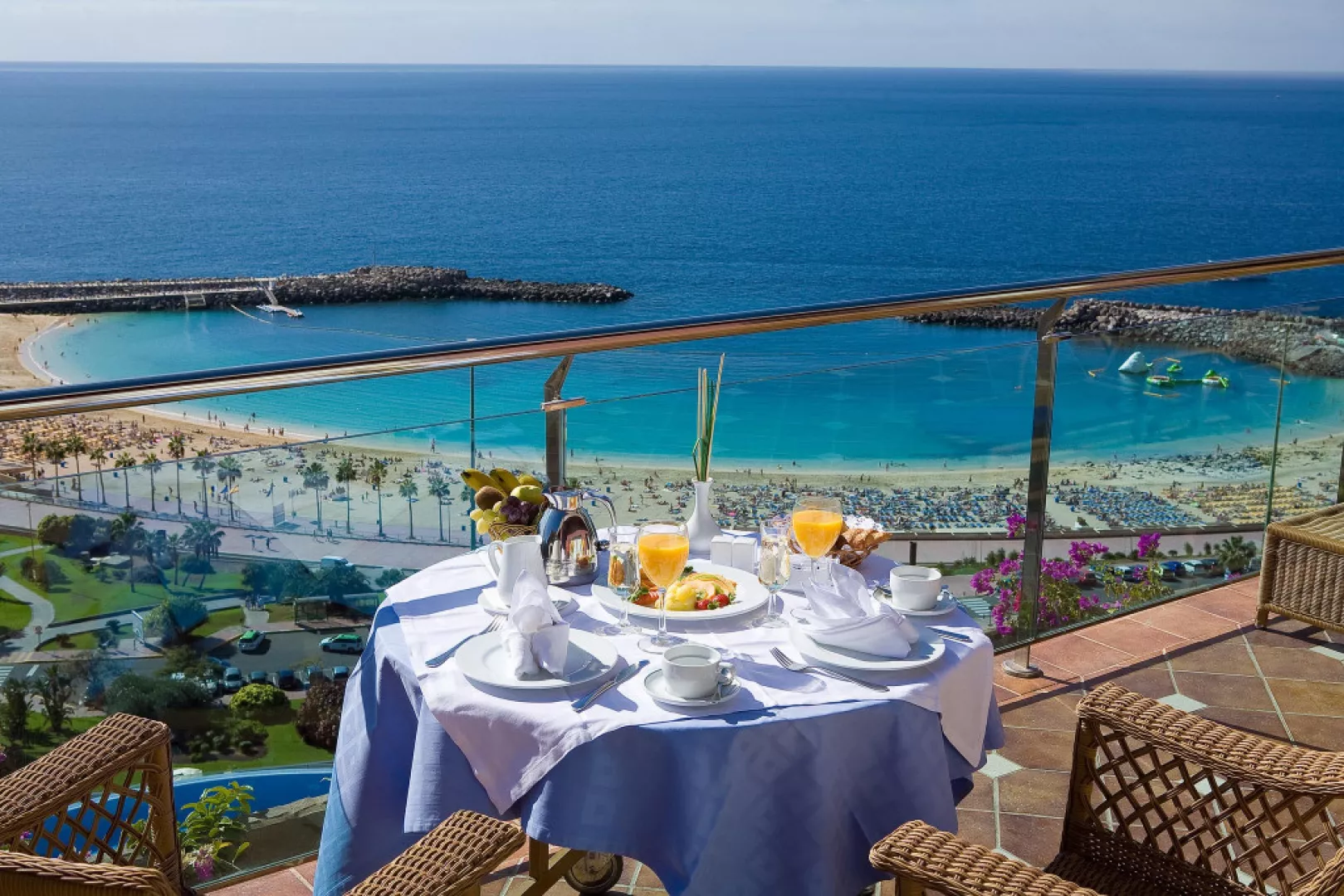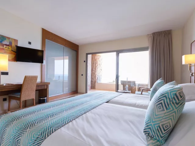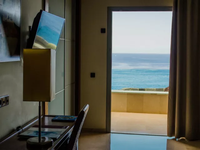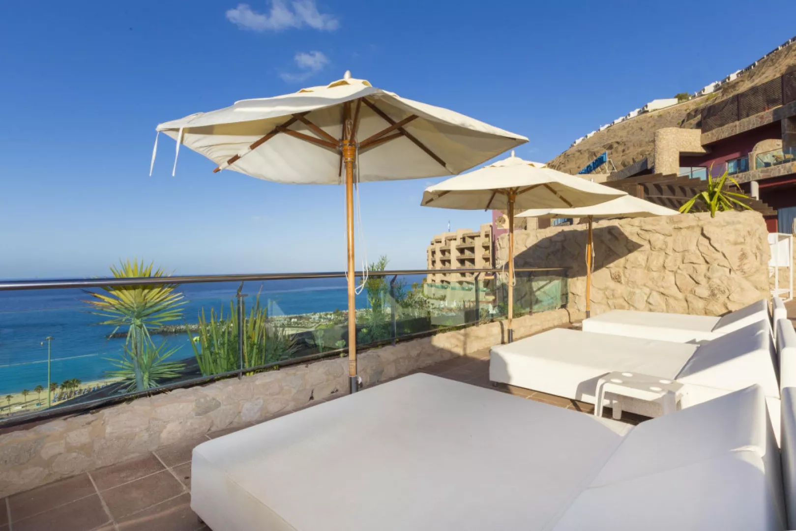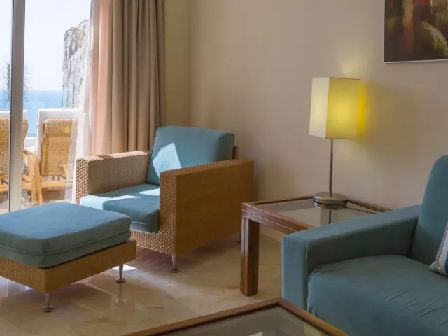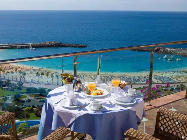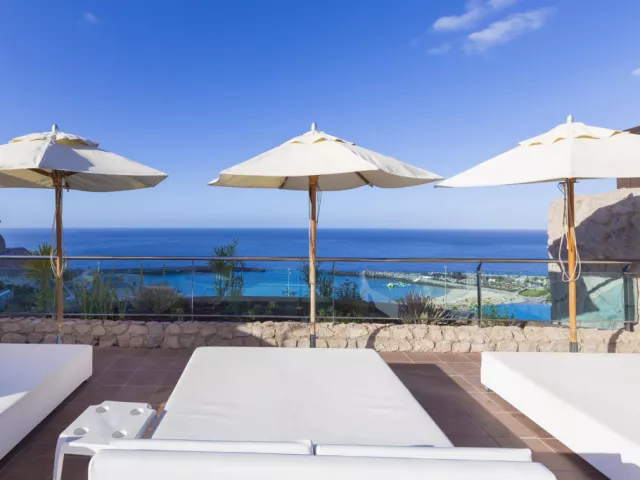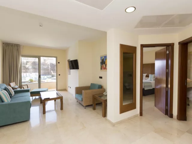 • Izba s výhľadom na oceán: V tejto izbe s rozlohou 42 m2 na vás čaká nádherný výhľad! Priestranná izba s balkónom, luxusom a eleganciou. Vybavenie: TV, telefón, klimatizácia, minibar (za príplatok), trezor (za príplatok), Wi-Fi, sušič vlasov, zväčšovacie zrkadlo, župan, papuče. • Apartmán s výhľadom na oceán: Ak si rezervujete ubytovanie v tomto priestrannom (70 m2) apartmáne, určite odídete z tohto nádherného ostrova spokojní. Slnečná, elegantná suita ponúka skvelý výhľad na pláž Amadores. Tento exkluzívny apartmán má oddelenú spálňu a obývaciu izbu, na terase sú umiestnené ležadlá. Vybavenie: TV, telefón, klimatizácia, minibar (za príplatok), trezor (za príplatok), Wi-Fi, sušič vlasov, zväčšovacie zrkadlo, župan, papuče.