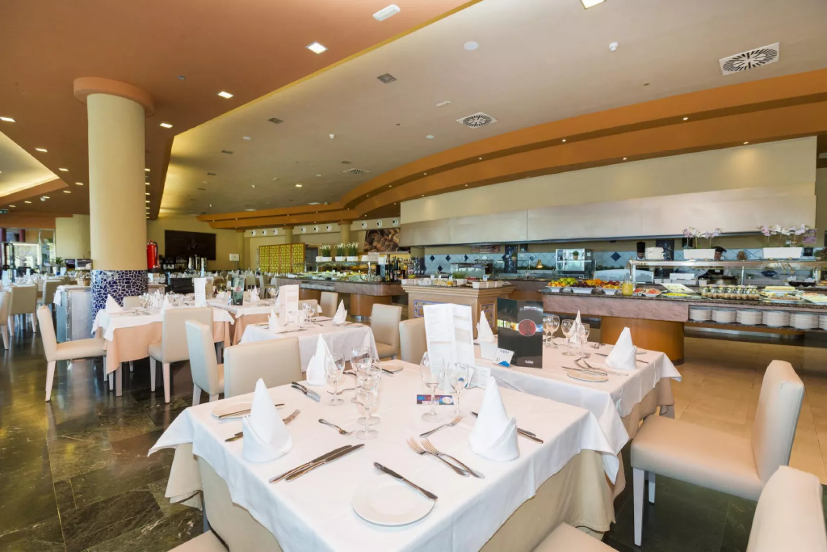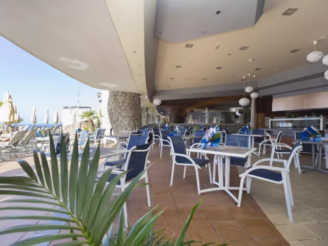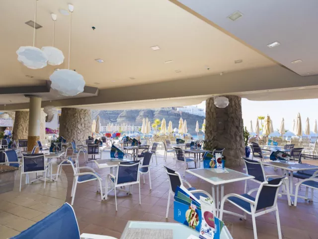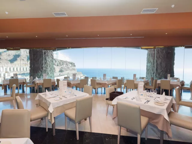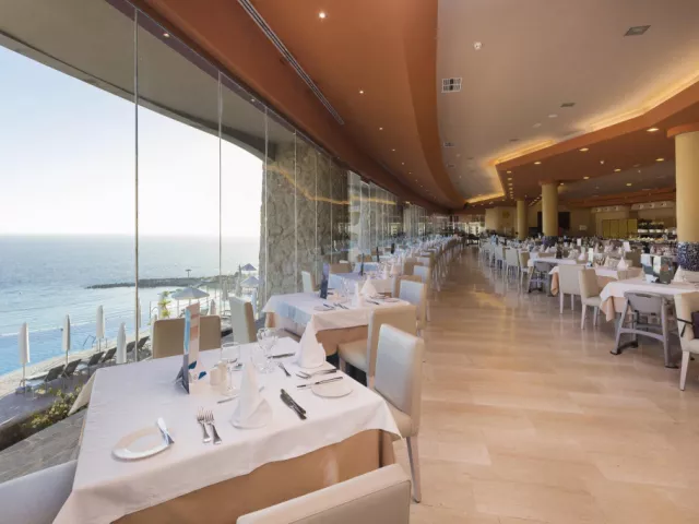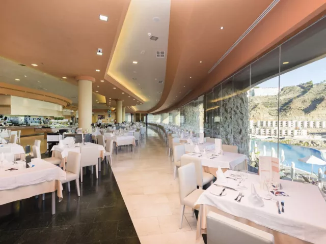 • Reštaurácia Kaia - à la carte: Reštaurácia Kaia je veľmi obľúbenou reštauráciou práve vďaka svojej vynikajúcej kuchyni a fantastickej obsluhe. Reštaurácia má nádherný výhľad na pláž Amadores, pri ktorom si môžete vychutnávať pochúťky a najlepšie medzinárodné jedlá, pripravované v otvorenej kuchyni. • Hlavná reštaurácia - bufetová reštaurácia: Dizajnová reštaurácia má veľké okná a nádherný výhľad na oceán. Táto bufetová reštaurácia ponúka široký výber lahôdok, či už si tu chcete dať raňajky, obed alebo večeru. Poznámka: Od pánov sa vyžaduje, aby si na večeru obliekli dlhé nohavice. Ďakujeme! Bary a terasy: • Bar pri bazéne Mirador: Čaká na Vás bar pri bazéne s pohodlnou terasou, kde sa každý deň od 10:30 do 18:00 podávajú občerstvenia a nápoje. • Paradiso Snack bar: Terasa vedľa hlavného bazéna, kde nájdete široký výber nápojov a občerstvenia. Bar Vám v čase obeda ponúka aj gurmánske menu. • Longue bar: Živú hudbu a tanec si môžete vychutnať v bare 3-krát a medzinárodné zábavné programy 6-krát do týždňa. • Lobby bar: V bare, ktorý sa nachádza pri vchode hotela, sa podávajú koktaily a nápoje každý deň od 19:00 do 23:30.
