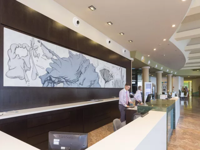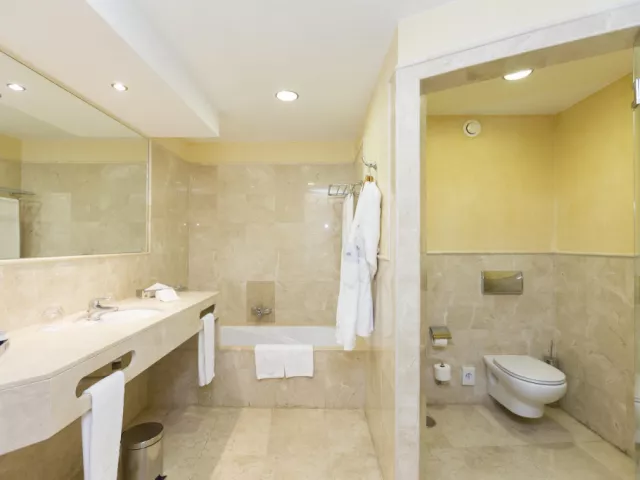• 2 bazény, • Wi-Fi, • predajný automat na potraviny, • automat na nápoje, • klimatizácia, • obchody, • kadernícky salón, • kozmetický salón, • denná tlač (za príplatok), • hotelová služba, • turecké kúpele, parný kúpeľ, • vírivka, masážny bazén, • masáž (za príplatok), • wellness centrum (za príplatok), • sauna