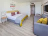 Izby štandard majú cca 28 m² a sú vybavené manželskou posteľou alebo dvoma samostatnými lôžkami, kúpeľňou so sprchou alebo vaňou, WC, fénom, klimatizáciou, telefónom, trezorom, rýchlovarnou kanvicou, terasou alebo balkónom s výhľadom do záhrady/bazén/vnútrozemie/na ulicu alebo čiastočne na more a môžu ubytovať maximálne 2 osoby. Izby deluxe majú cca 29 m² a rovnaké vybavenie ako izby štandard, navyše rozkladaciu pohovku, kam sa môže umiestniť 3. osoba. Rodinné izby majú cca 38 m², rovnaké vybavenie ako izby štandard, sú umiestnené na prízemí s výhľadom do záhrady, na bazén alebo na ulicu. Môžu ubytovať až 4 osoby. Suite má cca 40 m², rovnaké vybavenie ako štandard, samostatnú spálňu a rozkladaciu pohovku v obývacej časti. Ubytovať sa môže až 4 osoby.