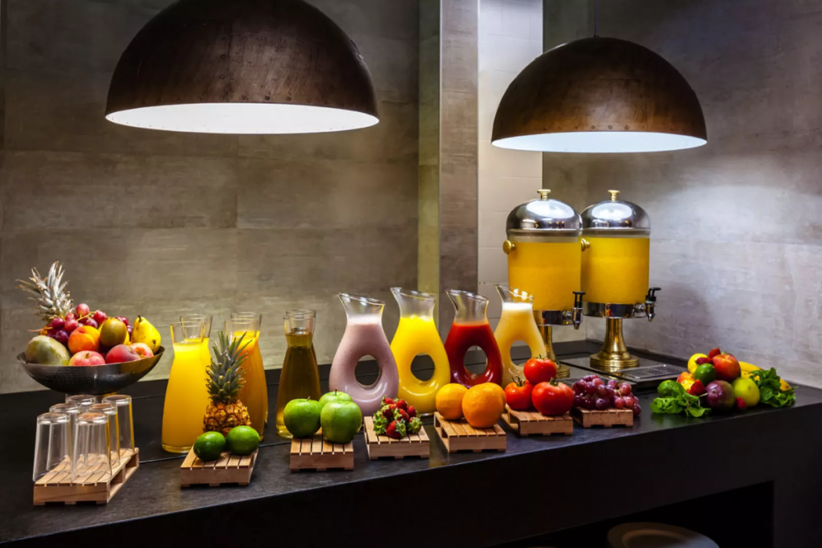 • Bufetová reštaurácia Atlantic: Reštaurácia Atlantic Buffet, ktorá je rozdelená do troch tém – miestnej, ázijskej a medzinárodnej kuchyne, je ideálnym miestom na ochutnanie vynikajúcich kanárskych a rôznych medzinárodných jedál. • Športový bar Champs: Víta hostí viacerými obrazovkami na sledovanie rôznych športov a príjemnými nápojmi. • Bar pri bazéne Breeze Gastro: V sofistikovanom prostredí Chill Out si môžete vybrať z inovatívneho à la carte menu , ktoré je zložené zo stredomorských jedál. Môžete tiež vyskúšať rôzne teplé a studené občerstvenia, osviežujúce nápoje, mojito a lahodné koktaily. • B-Lounge bar: Reštaurácia umiestnená hneď vedľa recepcie, ponúka široký výber nealkoholických nápojov a koktailov.