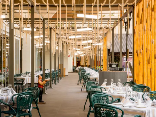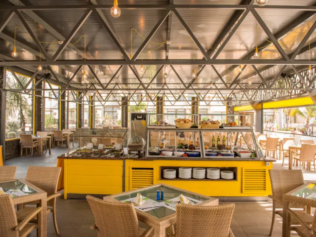 • Hlavná reštaurácia: V hlavnej hotelovej reštaurácii si môžete vybrať z jedál, ktoré sa každý deň menia. Zážitková kuchyňa je tiež súčasťou tejto reštaurácie. • Davao: Hotelová reštaurácia pri bazéne poskytuje dokonalý relax a osvieženie počas dňa. • Bamboo: Špeciálna ázijská reštaurácia, kde môžete spoznať majstrovské diela indickej, čínskej a japonskej kuchyne. • La Piazza: Talianska reštaurácia, kde sa pripravujú najlepšie talianske pizze a cestoviny podľa originálnych receptúr. • Beatriz: autentická hotelová hamburgerová reštaurácia. • Sabor Canario: Reštaurácia Kanárskych ostrovov, v ktorej môžete ochutnať najlepšie miestne jedlá. • La Barqueta: Jeden z hotelových barov, ktorý ponúka špeciálne koktaily vo večerných hodinách a lahodnú kávu počas dňa. • Mindanao: Miesto, kde sa konajú hlavné predstavenia hotela.