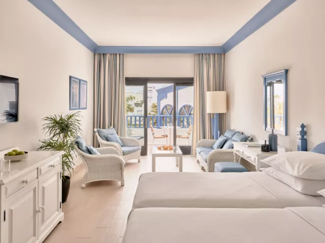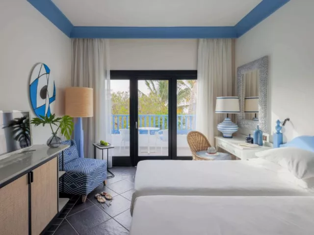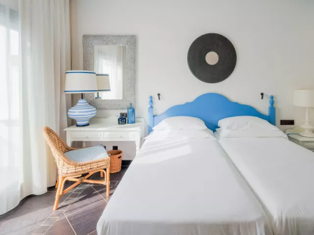 • Dvojlôžková izba: Rozloha: 26 m², zrekonštruovaná izba Výhľad: na ulicu alebo vnútorný chodník Izba na prízemí s balkónom alebo terasou. Možnosť prenájmu trezoru. Vybavenie: bezplatné Wi-Fi, písací stôl, kreslo, vaňa alebo sprcha, uteráky, sušič vlasov, mini chladnička, klimatizácia, trezor, rýchlovarná kanvica, telefón, satelitné kanály, TV s plochou obrazovkou, USB-C zásuvky, balkón • Izba Superior – B: Rozloha: 26 m², zrekonštruovaná izba Výhľad: na bazén alebo záhradu Izby sa nachádzajú na 2., 3. a 4. poschodí. Z balkóna je výhľad na bazén, záhradu, okolie alebo čiastočne na oceán. Vybavenie: bezplatné Wi-Fi, písací stôl, kreslo, trezor (za poplatok), vaňa alebo sprcha, uteráky, sušič vlasov, mini chladnička, klimatizácia, rýchlovarná kanvica, telefón, satelitné kanály, TV s plochou obrazovkou, USB-C zásuvky, balkón • Izba Deluxe – C: Rozloha: 26 m², zrekonštruovaná izba Výhľad: na bazén, záhradu alebo oceán Z balkóna vybaveného ležadlami je výhľad na bazén, záhrady alebo oceán. Izby sa nachádzajú na 2.–4. poschodí. Vybavenie: bezplatné Wi-Fi, písací stôl, kreslo, sprcha, uteráky, župan, papuče, sušič vlasov, mini chladnička, klimatizácia, trezor (za poplatok), rýchlovarná kanvica, telefón, satelitné kanály, TV s plochou obrazovkou, USB-C zásuvky, balkón, nepriamé osvetlenie balkónových dverí • Izba Deluxe Premium – C: Rozloha: 26 m², zrekonštruovaná izba Výhľad: na bazén, záhradu alebo oceán Izba má priestranný balkón s ležadlami a výhľadom na bazén, záhradu alebo oceán. Izby sa nachádzajú na 2.–4. poschodí. Vybavenie: bezplatné Wi-Fi, posteľ 180x200 cm s kvalitným matracom, písací stôl, kreslo, sprcha, uteráky, župan, papuče, sušič vlasov, mini chladnička, kávovar Espresso, klimatizácia, trezor (za poplatok), rýchlovarná kanvica, telefón, satelitné kanály, TV s plochou obrazovkou, USB-C zásuvky, balkón • Rodinná izba: Rozloha: 33 m², zrekonštruovaná izba Výhľad: na záhradu alebo bočne na oceán Z balkóna s ležadlami je výhľad na bazén, záhradu, okolie alebo more. Izby sa nachádzajú na 2. a 3. poschodí. Vybavenie: bezplatné Wi-Fi, písací stôl, kreslo, rozkladacia pohovka alebo poschodová posteľ, detská postieľka na požiadanie zdarma, vaňa alebo sprcha, uteráky, sušič vlasov, mini chladnička, klimatizácia, trezor (za poplatok), rýchlovarná kanvica, telefón, satelitné kanály, TV s plochou obrazovkou, USB-C zásuvky, balkón • Junior suita: Rozloha: 37 m² Výhľad: na bazén, záhradu alebo bočne na oceán Z balkóna s ležadlami je výhľad na bazén, záhradu, okolie alebo bočne na oceán. Izby sa nachádzajú na 2.–4. poschodí. Vybavenie: bezplatné Wi-Fi, písací stôl, kreslo, kávovar Espresso, denník, vaňa so sprchou typu dažďová hlavica, dve umývadlá, uteráky, župan, papuče, sušič vlasov, minibar (na požiadanie doplnený), klimatizácia, trezor zdarma, rýchlovarná kanvica, telefón, satelitné kanály, TV s plochou obrazovkou, balkón