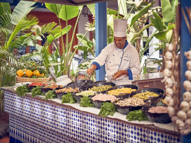 Hlavná hotelová reštaurácia je známa svojou kulinárskou rozmanitosťou, ponúka chutné jedlá v štýlovom a pohodlnom prostredí. Na priestrannej terase si môžete vychutnať kanárske a medzinárodné pochúťky pod hrejivými lúčmi slnka, alebo pod krásnou nočnou oblohou plnej hviezd. Večera je špeciálnym vrcholom hotela Seaside Los Jameos Playa. Kulinárske zážitky dopĺňajú dennodenne sa meniace tematické večery, záhradné grilovačky a galavečery. V Snack bare pri bazéne na deti čaká detské menu. V baroch Piano a Belingo na Vás čakajú živé hudobné predstavenia a široký výber osviežujúcich nápojov a koktailov. Prosíme pánov, aby počas večere mali oblečené dlhé nohavice!