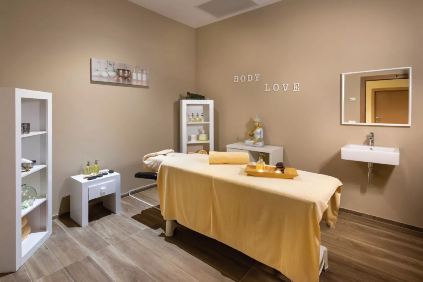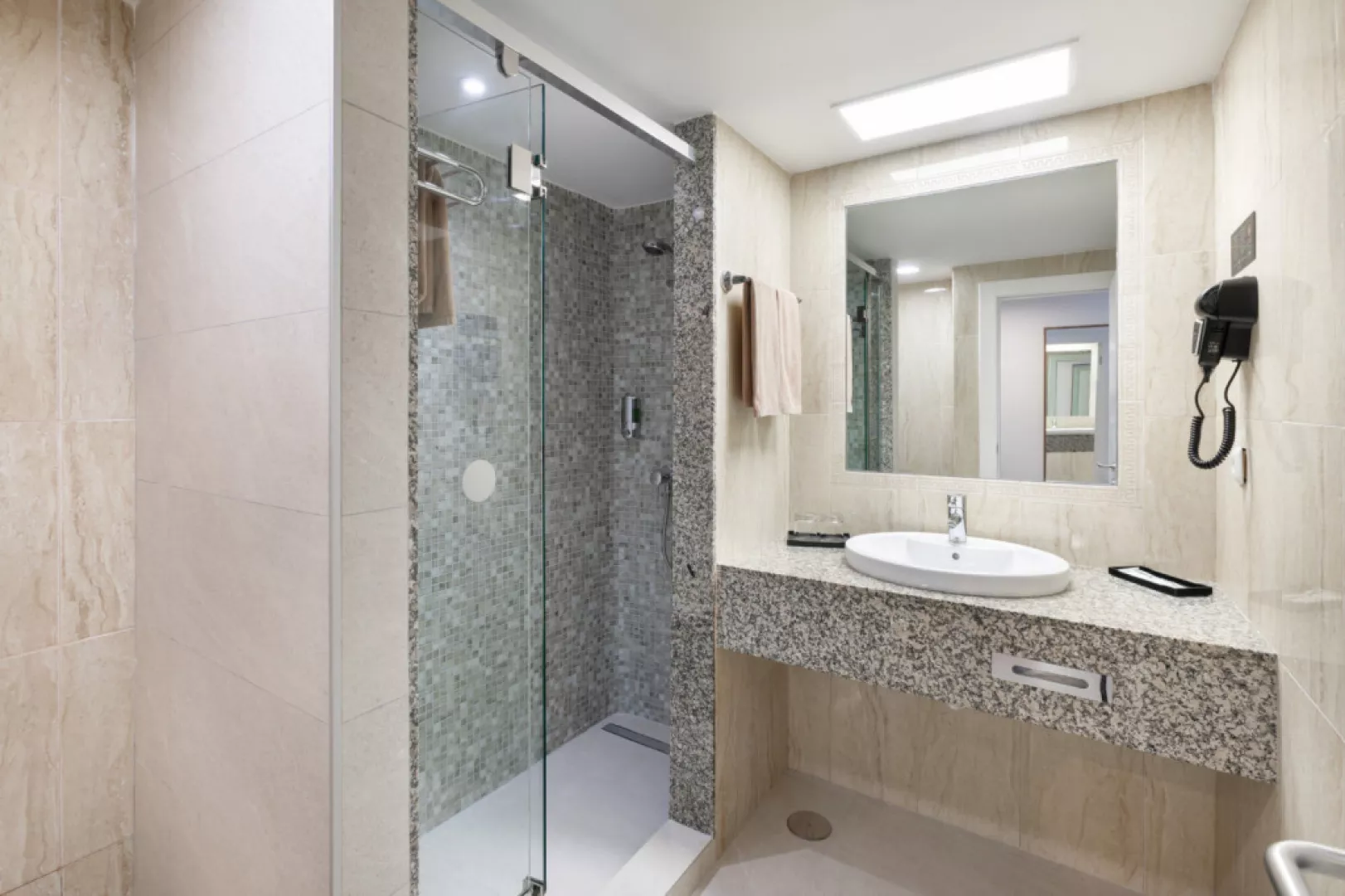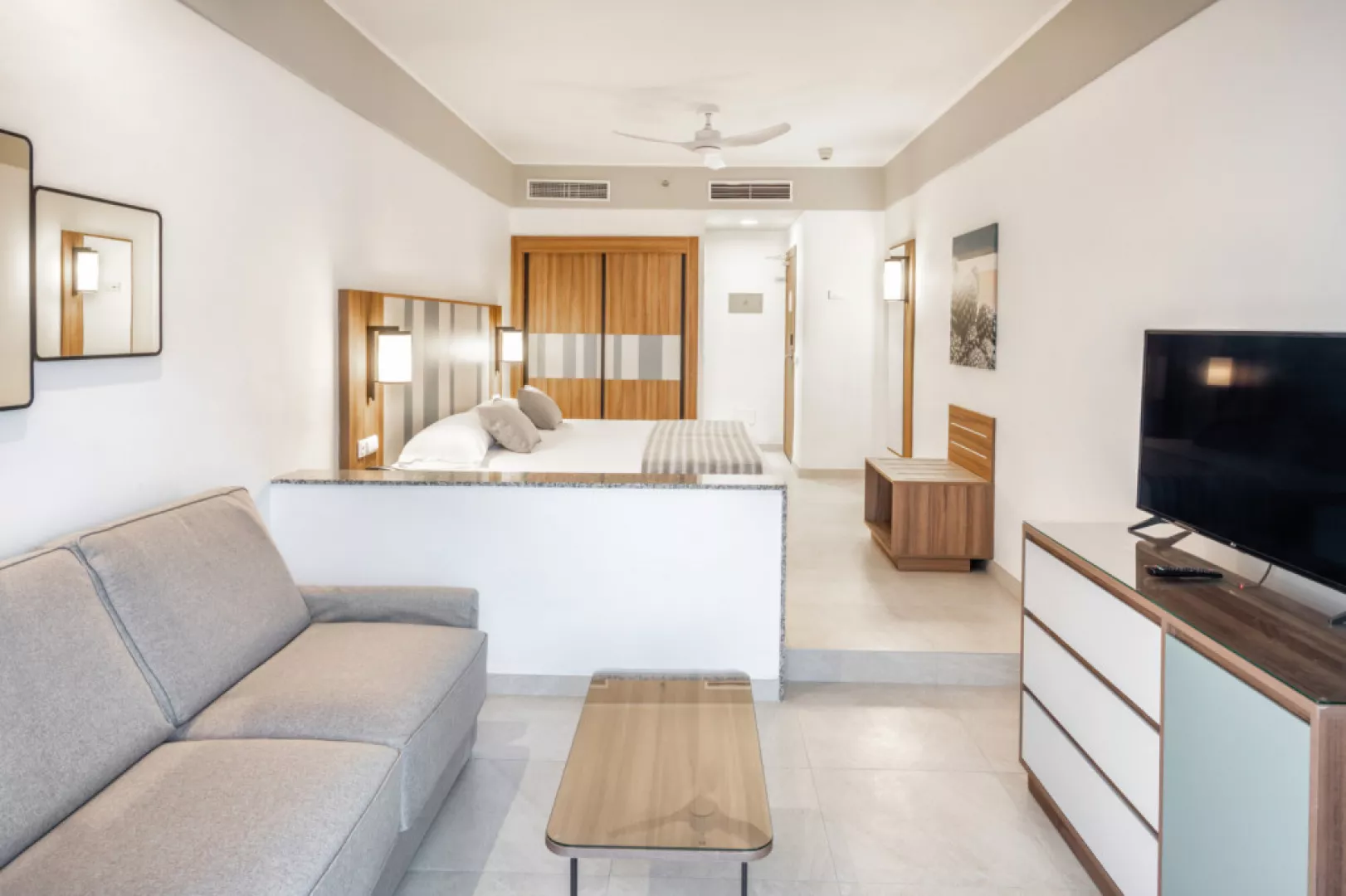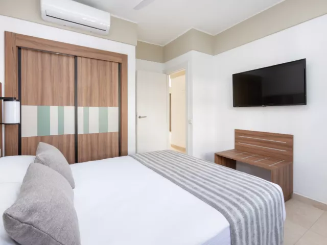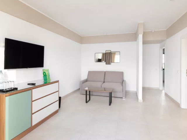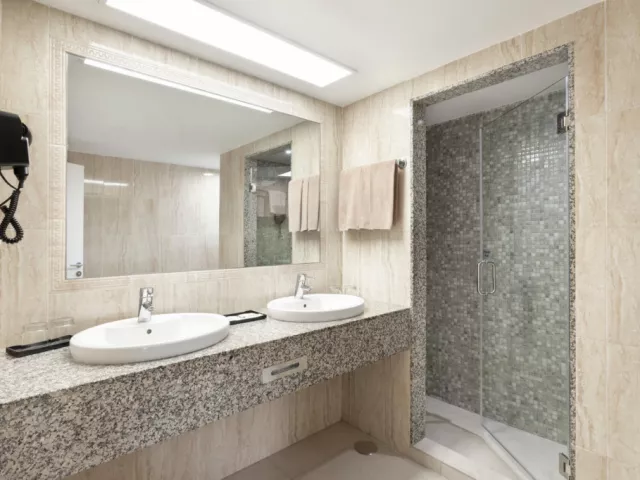 Izby sú moderne zariadené s možnosťou jednej alebo dvoch prísteliek. K dispozícii sú aj izby s výhľadom na more (za príplatok), klimatizácia, TV, wifi, trezor, minichladnička, kúpeľňa s vaňou alebo sprchou a WC, sušič na vlasy, ako aj balkón alebo terasa.