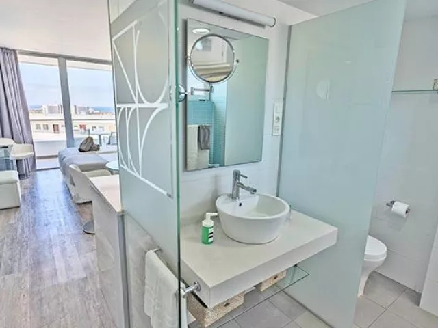 • Suita Junior: Klimatizovaná suita Junior má moderný dizajn, obývací priestor s TV s plochou obrazovkou, bezplatné Wi-Fi pripojenie na internet a balkón. Kompletná kuchynka je vybavená 2 platničkami, chladničkou, mikrovlnnou rúrou, kávovarom, hriankovačom a rýchlovarnou kanvicou. V kúpeľni je moderný otvorený sprchovací kút, župan a sušič vlasov. Trezor je k dispozícii za príplatok. Veľkosť izby: 38 m2; Výhľad: záhrada alebo ulica; Vybavenie: wifi, toaletné potreby zdarma, sprcha, župan, uteráky, papuče, sušič vlasov, šatníková skriňa, kávovar, klimatizácia, trezor, žehlička, trezor na notebook, chladnička, mikrovlnná rúra, kávovar, varná kanvica, varná doska, kuchynské vybavenie, hriankovač , jedálenský stôl , kuchynský kút, pohovka, písací stôl, posedenie, jedáleň, telefón, satelitné programy, TV s plochou obrazovkou, balkón, vonkajší nábytok, vonkajší jedálenský kút, elektrická zásuvka pri posteli, vešiak, sušiak na bielizeň. • Suita Junior s výhľadom na bazén: Klimatizovaná suita Junior má moderný dizajn, obývací priestor s TV s plochou obrazovkou, bezplatné Wi-Fi pripojenie na internet a balkón s výhľadom na bazén. Kompletná kuchynka je vybavená 2 platničkami, chladničkou, mikrovlnnou rúrou, kávovarom, hriankovačom a rýchlovarnou kanvicou. V kúpeľni je moderný otvorený sprchovací kút, župan a sušič vlasov. Trezor je k dispozícii za príplatok. Veľkosť izby: 38 m2; Výhľad: záhrada alebo bazén; Vybavenie: wifi, toaletné potreby zdarma, sprcha, župan, uteráky, papuče, sušič vlasov, šatníková skriňa, kávovar, klimatizácia, trezor, žehlička, trezor na notebook, chladnička, mikrovlnná rúra, kávovar, varná kanvica, varná doska, kuchynské vybavenie, hriankovač , jedálenský stôl , kuchynský kút, pohovka, písací stôl, posedenie, jedáleň, telefón, satelitné programy, TV s plochou obrazovkou, balkón, vonkajší nábytok, vonkajší jedálenský kút, elektrická zásuvka pri posteli, vešiak, sušiak na bielizeň. • Suita Junior s výhľadom na oceán: Na svojich hostí čaká klimatizovaná suita Junior s moderným dizajnom. Má obývací priestor s TV s plochou obrazovkou, bezplatné Wi-Fi pripojenie na internet a balkón s výhľadom na oceán. Kompletná kuchynka je vybavená 2 platničkami, chladničkou, mikrovlnnou rúrou, kávovarom, hriankovačom a rýchlovarnou kanvicou. V kúpeľni je moderný otvorený sprchovací kút, župan a sušič vlasov. Trezor je k dispozícii za príplatok. Veľkosť izby: 38 m2; Výhľad: oceán; Vybavenie: wifi, toaletné potreby zdarma, sprcha, župan, uteráky, papuče, sušič vlasov, šatníková skriňa, kávovar, klimatizácia, trezor, žehlička, trezor na notebook, chladnička, mikrovlnná rúra, kávovar, varná kanvica, varná doska, kuchynské vybavenie, hriankovač , jedálenský stôl , kuchynský kút, pohovka, písací stôl, posedenie, jedáleň, telefón, satelitné programy, TV s plochou obrazovkou, balkón, vonkajší nábytok, vonkajší jedálenský kút, elektrická zásuvka pri posteli, vešiak, sušiak na bielizeň. • Suita: Klimatizovaná suita s moderným nábytkom, obývacou izbou, TV s plochou obrazovkou, bezplatným Wi-Fi pripojením na internet, samostatnou spálňou a zariadeným balkónom. K dispozícii je aj plne vybavená kuchynka, 2 platničky, chladnička, mikrovlnná rúra, kávovar, hriankovač a rýchlovarná kanvica. V kúpeľni je moderný otvorený sprchovací kút, župan a sušič vlasov. Trezor je k dispozícii za príplatok. Veľkosť izby: 54 m2; Pohľad: záhrada alebo ulica; Vybavenie: wifi, toaletné potreby zdarma, sprcha, župan, uteráky, papuče, sušič vlasov, šatníková skriňa, kávovar, klimatizácia, trezor, žehlička, trezor na notebook, chladnička, mikrovlnná rúra, kávovar, varná kanvica, varná doska, kuchynské vybavenie, hriankovač , jedálenský stôl , kuchynský kút, pohovka, písací stôl, posedenie, jedáleň, telefón, satelitné programy, TV s plochou obrazovkou, balkón, vonkajší nábytok, vonkajší jedálenský kút, elektrická zásuvka pri posteli, vešiak, sušiak na bielizeň. • Suita s výhľadom na oceán: Klimatizovaná suita s moderným nábytkom, obývacou izbou, TV s plochou obrazovkou, bezplatným Wi-Fi pripojením na internet, samostatnou spálňou a zariadeným balkónom. K dispozícii je aj plne vybavená kuchynka, 2 platničky, chladnička, mikrovlnná rúra, kávovar, hriankovač a rýchlovarná kanvica. V kúpeľni je moderný otvorený sprchovací kút, župan a sušič vlasov. Trezor je k dispozícii za príplatok. Veľkosť izby: 54 m2; Výhľad: oceán; Vybavenie: wifi, toaletné potreby zdarma, sprcha, župan, uteráky, papuče, sušič vlasov, šatníková skriňa, kávovar, klimatizácia, trezor, žehlička, trezor na notebook, chladnička, mikrovlnná rúra, kávovar, varná kanvica, varná doska, kuchynské vybavenie, hriankovač , jedálenský stôl , kuchynský kút, pohovka, písací stôl, posedenie, jedáleň, telefón, satelitné programy, TV s plochou obrazovkou, balkón, vonkajší nábytok, vonkajší jedálenský kút, elektrická zásuvka pri posteli, vešiak, sušiak na bielizeň. • Junior suita Swim Up: Veľkosť izby: 54 m2 Výhľad: bazén Vybavenie: Junior suite má všetok komfort s privilégiom priameho vstupu do exkluzívneho bazéna z terasy vašej izby. Každá nefajčiarska izba je priestranná a vybavená TV s plochou obrazovkou, bezplatným Wi-Fi pripojením na internet, klimatizáciou, trezorom (za poplatok), županom a sušičom vlasov. Plne vybavená, krásna kuchynka s 2 indukčnými rúrami, chladničkou, mikrovlnnou rúrou, kávovarom, hriankovačom a rýchlovarnou kanvicou. K dispozícii je tiež kúpeľňa so sprchovacím kútom. Okrem toho si hostia môžu vychutnať výhľad z veľkého balkóna.