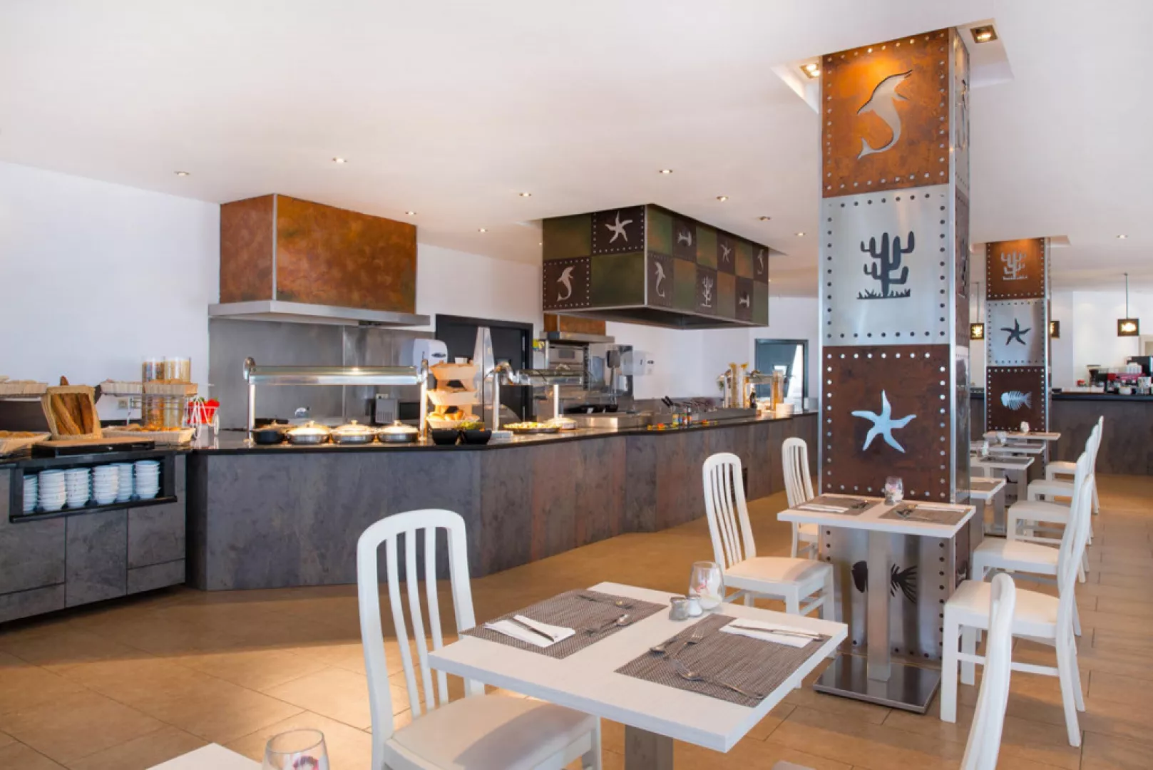 • Hlavná reštaurácia: Miestne a medzinárodné jedlá, zážitková kuchyňa. Dress code: Spoločenský odev počas večere, dlhé nohavice pre pánov. • Reštaurácia Barbacoa: Bufetová reštaurácia s tradičnou kanárskou kuchyňou. • Bar pri bazéne: Z baru si môžete objednať drinky, nealko nápoje a ľahké občerstvenie priamo na Vaše lehátko. • Bar Lanzarote: Príjemný lounge bar, v ktorom si môžete vychutnať svoju obľúbenú kávu alebo drink. • Hall bar: Niet lepšieho miesta na banánový likér a tanec. Poznámka: Vážení hostia, žiadame Vás, aby ste sa obliekali podľa predpisov hotelov Iberostar aj počas obeda (páni by mali mať aspoň tričko a ženy šaty alebo niečo podobné, vhodné). Dress code počas večere je ležérny (dlhé nohavice, polokošele, košele pre pánov). Ďakujeme za pochopenie!