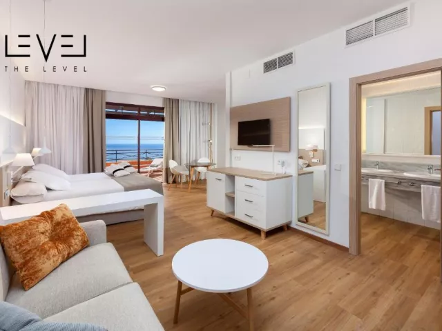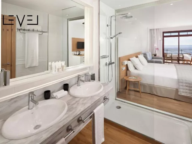 • Suita Junior: Rozloha izby: 35 m2; Výhľad: záhrada alebo ulica; Táto pohodlná suita má nielen balkón alebo krásnu terasu na opaľovanie alebo čítanie knihy, ale aj veľkú spálňu s dvomi samostatnými lôžkami, ktoré možno premeniť na manželskú posteľ. Vybavenie: Matrac DreamMaker, TV, Káva a čaj na izbe, Klimatizácia, Toaletné potreby zdarma, Župan, Papuče, Fén, Trezor na notebook, Minibar, Trezor, Pohovka, Vonkajší nábytok, Telefón, Uteráky, Satelitné programy. • Suita Junior s výhľadom na oceán: Rozloha izby: 35 m2; Výhľad: oceán; Tento pohodlný apartmán má nielen balkón alebo krásnu terasu na opaľovanie alebo čítanie knihy, ale aj veľkú spálňu s dvoma samostatnými lôžkami, ktoré možno premeniť na manželskú posteľ. Vybavenie: Matrac DreamMaker, TV, Káva a čaj na izbe, Klimatizácia, Toaletné potreby zdarma, Župan, Papuče, Fén, Trezor na notebook, Minibar, Trezor, Pohovka, Vonkajší nábytok, Telefón, Uteráky, Satelitné programy. • Suita The Level Junior s výhľadom na oceán: Vychutnajte si nádherný výhľad na pobrežie Costa Adeje zo svojho balkóna. Táto luxusná izba má pohodlnú spálňu a modernú, plne vybavenú kúpeľňu so sprchovacím kútom. Rozloha izby: 45 m2 Výhľad: oceán; Vybavenie: Vaňa, Toaletné potreby zdarma, Župan, Papuče, Fén, Trezor na notebook, Kávovar, Trezor, TV, Vstup do Executive Lounge, Služba budenia, Pohovka, Vonkajší nábytok, Uteráky, Služba žehlenia, Minibar, Rýchlovarná kanvica, Telefón, Satelitné programy , Klimatizácia. • Suita The Level s výhľadom na oceán: Táto suita má všetko, čo by ste očakávali od luxusnej suity. Pohodlná a priestranná spálňa, obývacia izba s pohovkou, kúpeľňa s vaňou a samostatným sprchovacím kútom, balkón, panoramatický výhľad na Atlantický oceán a neobmedzené prémiové služby Level Rozloha izby: 45 m2 Výhľad: oceán; Vybavenie: Vaňa, Sprcha, Toaletné potreby zdarma, Župan, Papuče, Fén, Trezor na notebook, Kávovar, Trezor, TV, Vstup do Executive Lounge, Služba budenia, Pohovka, Vonkajší nábytok, Uteráky, Služba žehlenia, Minibar, Rýchlovarná kanvica, Telefón, Satelitné kanály, Klimatizácia. • Izba Classic: Rozloha izby: 35 m2; Výhľad: záhrada; Vybavenie: 2 jednolôžka spojené dohromady, pohovka, balkón alebo terasa, klimatizácia, Wi-Fi, SAT TV s plochou obrazovkou, trezor na laptop (za príplatok), minibar (pripravený na vyžiadanie a za príplatok), rýchlovarná kanvica, kúpeľňa so sprchovacím kútom alebo vaňa, zväčšovacie zrkadlo, sušič vlasov, toaletné potreby, posedenie.
