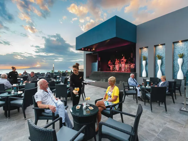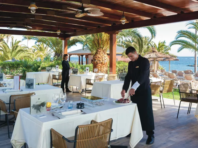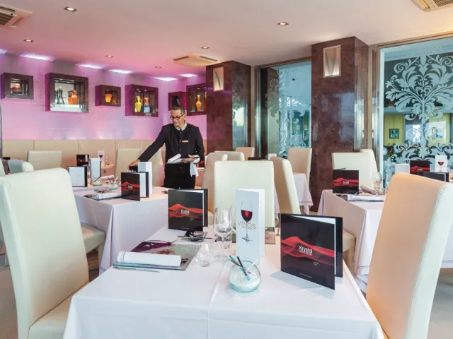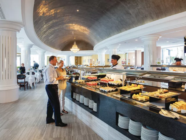 V rámci polpenzie na Vás čakajú pestré bufetové raňajky, kde môžete ochutnať čerstvo vyrobené pochúťky, šampanské, teplé nápoje a čerstvé ovocné šťavy. Počas večere si môžete vybrať medzi teplými a studenými jedlami v bufete, ako aj čerstvo upečenými dobrotami, vegetariánskymi jedlami a dezertmi. Dvakrát týždenne kuchári reštaurácie pripravujú tematické večere. V reštaurácii Krystal Fusion sa podávajú španielske pochúťky, je potrebná rezervácia. Občerstvenie, tapas a nápoje sú k dispozícii v bare pri bazéne, lobby bare a salóniku.