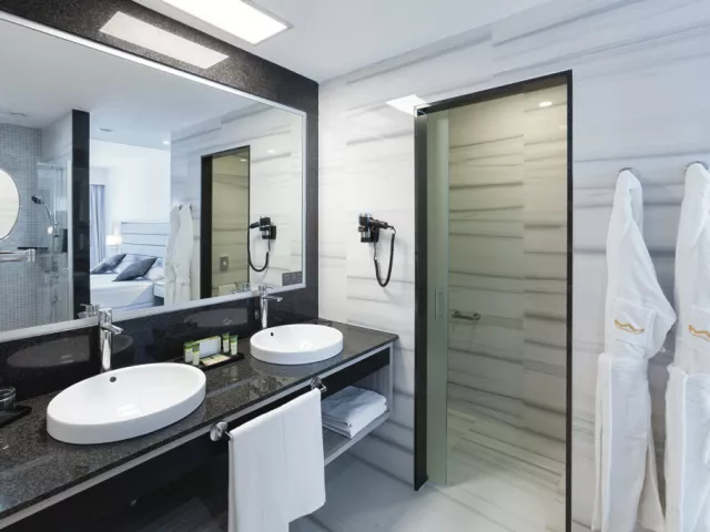 • Štandardná izba: Dvojlôžkové izby v hoteli Riu Palace Tenerife sú plne vybavené a obohatené najmodernejšími službami, takže si dovolenku užijete v maximálnom pohodlí. Izby s rozlohou 33 m2 majú dve samostatné postele alebo jednu manželskú posteľ, pohovku, Wi-Fi, TV a balkón alebo terasu. Vybavenie izby: klimatizácia, trezor (za príplatok), Wi-Fi, minibar (za príplatok). • Izba s výhľadom do záhrady/oceán: Tieto izby v hoteli Riu Palace Tenerife sú plne vybavené a obohatené najmodernejšími službami, takže si dovolenku môžete užiť v maximálnom pohodlí. Izby s rozlohou 33 m2 majú dve samostatné postele alebo manželskú posteľ, pohovku, Wi-Fi, TV a balkón alebo terasu, s výhľadom do záhrady, alebo na Atlantický oceán. Vybavenie izby: klimatizácia, trezor (za príplatok), Wi-Fi, minibar (za príplatok). • Izba s bočným výhľadom na oceán: Tieto izby v hoteli Riu Palace Tenerife sú plne vybavené a obohatené najmodernejšími službami, takže si dovolenku môžete užiť v maximálnom pohodlí. Izby s rozlohou 33 m2 majú dve samostatné postele alebo jednu manželskú posteľ, pohovku, Wi-Fi, TV a balkón alebo terasu s čiastočným výhľadom na Atlantický oceán. Vybavenie izby: klimatizácia, trezor (za príplatok), Wi-Fi, minibar (za príplatok). • Suita Junior: Junior suity sú perfektným ubytovaním, ak chcete zostať na Tenerife s najlepším výhľadom na Atlantický oceán. Tieto izby s rozlohou 38 m2 majú dve samostatné postele alebo jednu manželskú posteľ, pohovku v obývacej izbe, hydromasážnu vaňu, WiFi, satelitnú TV a balkón alebo terasu s nádherným výhľadom na oceán. Rozloha suity: 38 m2 Výhľad: oceán Vybavenie: Wi-Fi, vaňa alebo sprchovací kút, uteráky, sušič vlasov, šatníková skriňa, trezor, ventilátor, písací stôl, telefón, satelitné programy, TV s plochou obrazovkou, služba budenia.