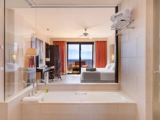 • Izba Deluxe: Rozloha izby: 33 m2 Výhľad: záhrada alebo ulica Vybavenie izieb: Klimatizácia, Wi-Fi (zdarma), TV, telefón, 2 samostatné lôžka alebo 1 manželská posteľ, minibar (za príplatok), vankúšové menu (zdarma), trezor, rýchlovarná kanvica, rozkladacia pohovka, kávovar a čajník, zariadený terasa . V kúpeľni je sprchový kút, masážna vaňa, zväčšovacie zrkadlo, fén, župan. • Izba Deluxe s výhľadom na oceán: Rozloha izby: 33 m2 Výhľad: oceán Vybavenie izieb: Klimatizácia, Wi-Fi (zdarma), TV, telefón, 2 samostatné lôžka alebo 1 manželská posteľ, minibar (za príplatok), vankúšové menu (zdarma), trezor, rýchlovarná kanvica, rozkladacia pohovka, kávovar a čajník, zariadený terasa . V kúpeľni je sprchový kút, masážna vaňa, zväčšovacie zrkadlo, fén, župan. • Prepojiteľná izba s výhľadom na bazén Rozloha izby: 66 m² Výhľad: bazén Vybavenie izieb: Klimatizácia, Wi-Fi (zdarma), TV, telefón, 2 samostatné lôžka alebo 1 manželská posteľ, minibar (za príplatok), vankúšové menu (zdarma), trezor, rýchlovarná kanvica, rozkladacia pohovka, kávovar a čajník, zariadený terasa . V kúpeľni je sprchový kút, masážna vaňa, zväčšovacie zrkadlo, fén, župan. • Rodinná izba: Rozloha izby: 66m2 Výhľad: záhrada alebo ulica Rodinné izby majú rozlohu 66 metrov štvorcových. Majú 2 spálne a 2 kúpeľne. Vybavenie izieb: Klimatizácia, Wi-Fi (zdarma), TV, telefón, 2 samostatné lôžka alebo 1 manželská posteľ, minibar (za príplatok), vankúšové menu (zdarma), trezor, rýchlovarná kanvica, rozkladacia pohovka, kávovar a čajník, zariadený terasa . V kúpeľni je sprchový kút, masážna vaňa, zväčšovacie zrkadlo, fén, župan. • Suita: Rozloha izby: 66m2 Výhľad: záhrada alebo ulica Suity s rozlohou 66 metrov štvorcových v Barceló Tenerife boli odeté do farieb zeme. Tieto exkluzívne izby majú oddelenú obývaciu izbu a spálňu, v kúpeľni s vírivkou nájdete aj sprchovací kút a na terase vám hojdacie siete a pohodlný nábytok ponúkajú dokonalý relax. Vybavenie izieb: Klimatizácia, Wi-Fi (zdarma), TV, telefón, 2 samostatné lôžka alebo 1 manželská posteľ, minibar (za príplatok), vankúšové menu (zdarma), trezor, rýchlovarná kanvica, rozkladacia pohovka, kávovar a čajník, zariadený terasa . V kúpeľni je sprchový kút, masážna vaňa, zväčšovacie zrkadlo, fén, župan.