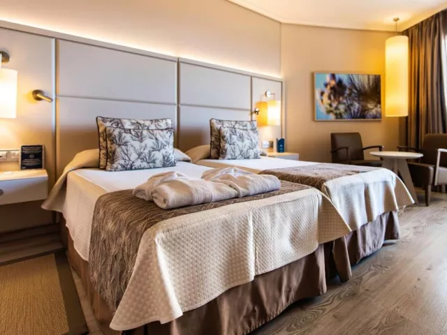 • Izba Štandard s bočným výhľadom na oceán: Rozloha izby: 30 m2 Výhľad: bočný na oceán alebo bazén Vybavenie: 2 samostatné postele alebo 1 manželská posteľ, balkón alebo terasa, minibar (za príplatok), trezor (za príplatok), klimatizácia, Wi-Fi, SAT TV s plochou obrazovkou, sušič vlasov, plážový uterák, župan, papuče, telefón na pevnú linku , písací stôl, vankúšové menu • Izba s výhľadom na bazén: Rozloha izby: 30 m2 Výhľad: bazén Vybavenie: 2 samostatné postele alebo 1 manželská posteľ, balkón alebo terasa, minibar (za príplatok), trezor (za príplatok), klimatizácia, Wi-Fi, SAT TV s plochou obrazovkou, sušič vlasov, plážový uterák, župan, papuče, telefón na pevnú linku , písací stôl, vankúšové menu • Izba Štandard s výhľadom na oceán: Rozloha izby: 30 m2; Výhľad: oceán; Vybavenie: 2 samostatné lôžka alebo 1 manželská posteľ, balkón alebo terasa, minibar (za príplatok), trezor (za príplatok), klimatizácia, Wi-Fi, SAT TV s plochou obrazovkou, sušič vlasov, plážový uterák, župan, papuče, pevná linka telefón, písací stôl, vankúšové menu . Izby UP! sa nachádzajú na horných poschodiach hotela a ponúkajú nádherný výhľad na Las Americas a oceán, ako aj prístup na exkluzívnu strešnú terasu UP! Vybavenie: Wi-Fi, príslušenstvo na prípravu kávy/čaju, toaletné potreby zdarma, vaňa alebo sprchovací kút, uteráky, osušky k bazénu, sušič vlasov, posteľná bielizeň, šatníková skriňa, dezinfekcia rúk, minibar, klimatizácia, trezor, písací stôl, telefón, satelitné programy, byt TV s obrazovkou, balkón, stojan na sušiak, budíček.