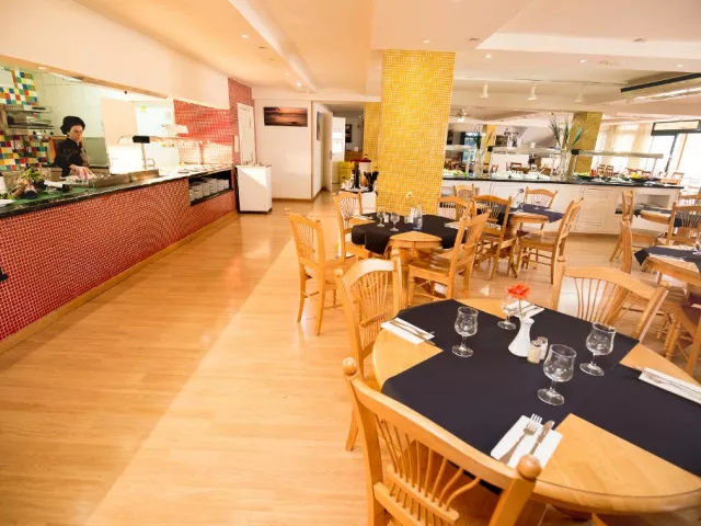 Raňajky a obedy si môžete vychutnať v bufetovej reštaurácii, ktorá ponúka nielen jedlá medzinárodnej a miestnej kuchyne, ale aj zážitkovú kuchyňu, v ktorej sa varí pred očami hostí. V bare pri bazéne na Vás čaká vkusná kaviarenská atmosféra, ktorá Vám ponúka široký výber nápojov a jedál.
