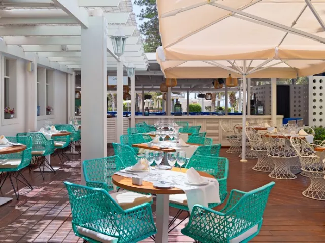 • BlueBay Hotelová bufetová reštaurácia ponúka počas Vašej dovolenky bohaté raňajky a večere. Vo večerných hodinách je k dispozícii aj otvorená kuchyňa. Dress code: Páni nesmú mať počas večere na sebe šortky, športové oblečenie a tričká bez rukávov. • Naturalia V záhrade hotela nájdete túto vonkajšiu à la carte reštauráciu, kde bude Váš obed zaručene pripravený z tých najčerstvejších a najkvalitnejších surovín. V jedálnom lístku nájdete predovšetkým stredomorské jedlá. • Cactus bar Priestranný vonkajší bar, kde sa cez deň môžete schovať s Vašim koktailom pred horúčavou, večer si môžete užiť zábavu formou predstavení. Chill-out terasa Bar sa nachádza na najvyššom 8. poschodí hotela, s nádherným výhľadom na Atlantický oceán. Vychutnajte si západ slnka z ležadla a popíjajte svoj obľúbený nápoj. Vo večerných hodinách sa tu organizujú aj koncerty. • Mike' Coffee: Bar na terase s krásnym výhľadom na oceán, kde môžete ochutnať špeciálne kávové špeciality a Gin s tonikom.