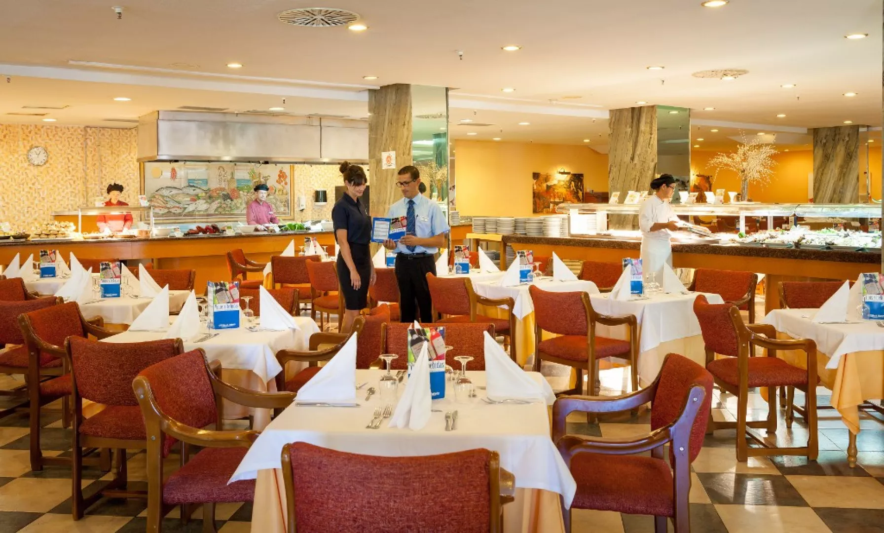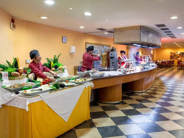 • Buffet Restaurant Raňajky, obedy a večere si môžete vychutnať v hlavnej hotelovej reštaurácii so švédskymi stolmi, ktorá umocňuje zážitok s otvorenou kuchyňou. Dress code: dlhé nohavice pre pánov na večeru. • Reštaurácia Mediterraneo (voliteľné, za príplatok) Ďalšia a'la carte reštaurácia hotela, kde si môžete vybrať z fantastických stredomorských jedál. Vyžaduje sa rezervácia vopred. Okrem reštaurácií sú v hoteli aj 3 bary, kde sa môžete počas dňa osviežiť a na konci dňa oddýchnuť.