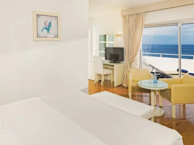 • Dvojlôžková izba Rozmer: 27 m2 Vybavenie: veľká manželská posteľ alebo 2 veľké samostatné postele, prístelka, Wi-Fi, klimatizácia, TV s medzinárodnými kanálmi, minibar (za príplatok), trezor (za príplatok), písací stôl, kúpeľňa s vaňou alebo sprchou, sušič vlasov, kozmetické zrkadlo , toaletné potreby Earth Collection, 1 fľaša vody pri príchode, zariadený balkón s výhľadom na ulicu. • Izba Superior s výhľadom na oceán Kapacita: 2 osoby Vybavenie: veľká manželská posteľ alebo 2 veľké samostatné postele, Wi-Fi, klimatizácia, TV s medzinárodnými kanálmi, minibar (za príplatok), trezor, písací stôl, kávovar Nespresso s kapsulami (denne dopĺňané), dokovacia stanica, kúpeľňa s vaňou alebo sprchou, sušič vlasov, kozmetické zrkadlo, toaletné potreby Earth Collection, župan a papuče, 1 fľaša vody pri príchode, zariadený balkón s výhľadom na oceán • Izba Privilege Podlahová plocha: 27 m2 Vybavenie: veľká manželská posteľ alebo 2 veľké samostatné postele, prístelka, Wi-Fi, klimatizácia, TV s medzinárodnými kanálmi, minibar (za poplatok), trezor, písací stôl, kávovar Nespresso s kapsulami (denne dopĺňaný), dokovacia stanica, kúpeľňa s vaňou alebo sprchou, sušičom vlasov, kozmetickým zrkadlom, toaletnými potrebami Earth Collection, županom a papučami, 1 fľaša vody pri príchode, zariadený balkón s výhľadom na oceán Tento typ izby zahŕňa nasledujúce doplnky a služby: à la carte raňajky a večere v reštaurácii El Mirador, personalizovaná registrácia a odhlásenie, neskoré odhlásenie (v závislosti od dostupnosti), personalizované služby zákazníkom, relaxačná zóna s vírivkou, Bali ležadlá a ležadlá, denná tlač, zľava na ošetrenie tváre a tela, stanica iDock (iPhone, iPod, iPad, MP3), župan a papuče Privilege, exkluzívne plážové osušky, VIP toaletné potreby, vankúšové menu, 2x denne upratovanie izby, služba-londiner