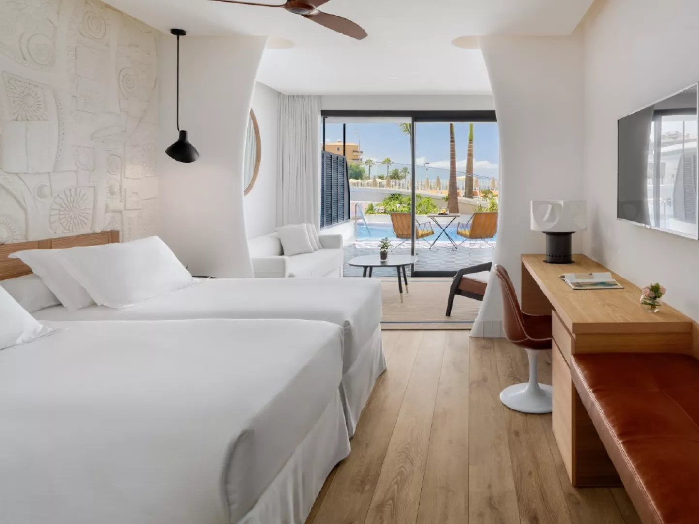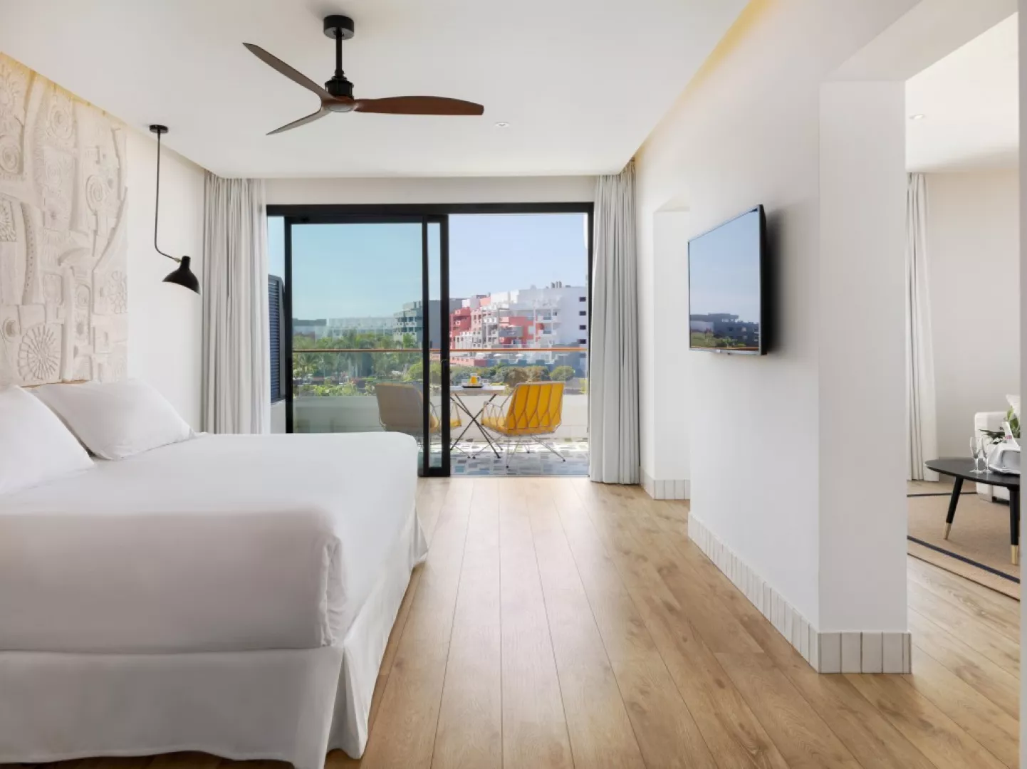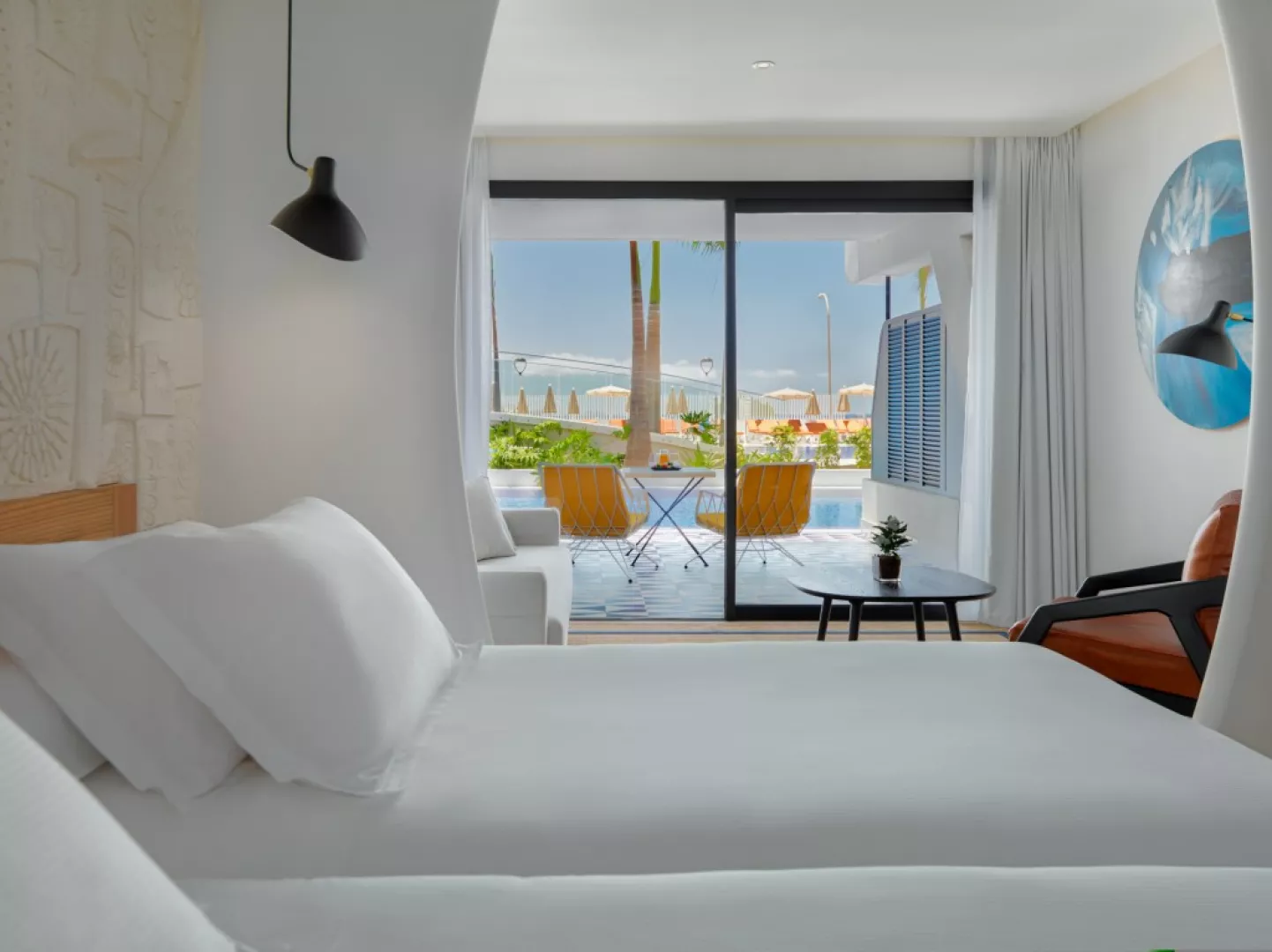 • Izba Štandard: Rozloha izby: 41 m2, Výhľad: záhrada, bazén; Vybavenie: Wi-Fi, toaletné potreby (zdarma), sprcha, župan, uteráky, papuče, sušič vlasov, šatníková skriňa, dezinfekcia rúk, kávovar, minibar, klimatizácia, trezor, odhlučnenie, ventilátor, kávovar, rýchlovarná kanvica, pohovka, písací stôl, telefón, satelitné programy, TV s plochou obrazovkou, balkón, vonkajší nábytok, zásuvka pri posteli, sušiak na bielizeň, budíček. • Izba s bočným výhľadom na oceán: Rozloha izby: 41 m2; Výhľad: záhrada, bazén, oceán; Vybavenie: Wi-Fi, toaletné potreby (zdarma), sprcha, župan, uteráky, papuče, sušič vlasov, šatníková skriňa, dezinfekcia rúk, kávovar, minibar, klimatizácia, trezor, odhlučnenie, ventilátor, kávovar, rýchlovarná kanvica, pohovka, písací stôl, telefón, satelit programy, TV s plochou obrazovkou, balkón, vonkajší nábytok, zásuvka pri posteli, sušiak na bielizeň, budíček. • Izba s výhľadom na oceán: Rozloha izby: 41 m2; Výhľad: záhrada, bazén, oceán; Vybavenie: Wi-Fi, toaletné potreby (zdarma), sprcha, župan, uteráky, papuče, sušič vlasov, šatníková skriňa, dezinfekcia rúk, kávovar, minibar, klimatizácia, trezor, odhlučnenie, ventilátor, kávovar, rýchlovarná kanvica, pohovka, písací stôl, telefón, satelit programy, TV s plochou obrazovkou, balkón, vonkajší nábytok, zásuvka pri posteli, sušiak na bielizeň, budíček. • Izba pri bazéne: Rozloha izby: 41 m2; Výhľad: záhrada, bazén, oceán; Vybavenie: Wi-FI, toaletné potreby (zdarma), sprcha, župan, uteráky, papuče, sušič vlasov, šatníková skriňa, dezinfekcia rúk, kávovar, minibar, klimatizácia, trezor, odhlučnenie, ventilátor, kávovar, rýchlovarná kanvica, pohovka, písací stôl, telefón, satelit programy, TV s plochou obrazovkou, balkón, vonkajší nábytok, zásuvka pri posteli, sušiak na bielizeň, budíček. • Izba Privilege: Rozloha izby: 41 m2; Výhľad: záhrada, bazén, oceán; Vybavenie: Wi-Fi, toaletné potreby (zdarma), sprcha, župan, uteráky, papuče, sušič vlasov, šatníková skriňa, dezinfekcia rúk, kávovar, minibar, klimatizácia, trezor, odhlučnenie, ventilátor, kávovar, rýchlovarná kanvica, pohovka, písací stôl, telefón, satelit programy, TV s plochou obrazovkou, balkón, vonkajší nábytok, zásuvka pri posteli, sušiak na bielizeň, budíček. Doplnky Privilege: prístup do privilegovaného salónika s terasou a výhľadom na oceán, personalizovaná registrácia a odhlásenie, neskoré odhlásenie (v závislosti od dostupnosti), personalizovaný zákaznícky servis, vankúšové menu a obliečka na vankúš, exkluzívny bazén, uteráky, VIP služby , príprava izby, upratovanie (2x denne na vyžiadanie). Ďalšie vybavenie izby: systém Chromecast na prehrávanie obsahu z mobilu alebo tabletu, minibar dopĺňaný každé 2 dni, bezplatný minibar na báze All inclusive (vymieňaný každé 2 dni), 49-palcová smart TV s medzinárodnými kanálmi, klimatizácia, vysokorýchlostné Wi-Fi pripojenie (zdarma), trezor (bezplatne), kávovar Nespresso (bezplatne, denné dopĺňanie 100% kompostovateľnými kapsulami). • Suita na najvyššom poschodí: Rozloha suity: 98 m2; Výhľad: záhrada, bazén, oceán; Vybavenie: Wi-Fi, toaletné potreby (zdarma), sprcha, župan, uteráky, papuče, sušič vlasov, šatníková skriňa, dezinfekcia rúk, kávovar, minibar, klimatizácia, trezor, odhlučnenie, ventilátor, kávovar, rýchlovarná kanvica, pohovka, písací stôl, telefón, satelit programy, TV s plochou obrazovkou, balkón, vonkajší nábytok, zásuvka pri posteli, sušiak na bielizeň, budíček. • Suita Junior: Rozloha suity: 67 m2; Výhľad: záhrada, bazén, oceán; Vybavenie: Wi-Fi, toaletné potreby zdarma, sprcha, župan, uteráky, papuče, sušič vlasov, šatníková skriňa, dezinfekcia rúk, kávovar, minibar, klimatizácia, trezor, odhlučnenie, ventilátor, kávovar, rýchlovarná kanvica, pohovka, písací stôl, telefón, satelit programy, TV s plochou obrazovkou, balkón, vonkajší nábytok, zásuvka pri posteli, sušiak na bielizeň, budíček. • Suita Privilege: Rozloha suity: 41 m2; Výhľad: záhrada, bazén, oceán; Vybavenie: Wi-Fi, toaletné potreby zdarma, sprcha, župan, uteráky, papuče, sušič vlasov, šatníková skriňa, dezinfekcia rúk, kávovar, minibar, klimatizácia, trezor, odhlučnenie, ventilátor, kávovar, rýchlovarná kanvica, pohovka, písací stôl, telefón, satelit programy, TV s plochou obrazovkou, balkón, vonkajší nábytok, zásuvka pri posteli, sušiak na bielizeň, budíček. Doplnky Privilege: prístup do privilegovaného salónika s terasou a výhľadom na oceán, personalizovaná registrácia a odhlásenie, neskoré odhlásenie (v závislosti od dostupnosti), personalizovaný zákaznícky servis, vankúšové menu a obliečka na vankúš, exkluzívny bazén, uteráky, VIP služby , príprava izby, upratovanie (2x denne na vyžiadanie). Ďalšie vybavenie izby: systém Chromecast na prehrávanie obsahu z mobilu alebo tabletu, minibar dopĺňaný každé 2 dni, bezplatný minibar na báze all inclusive (vymieňaný každé 2 dni), 49-palcová smart TV s medzinárodnými kanálmi, klimatizácia, vysokorýchlostné Wi-Fi pripojenie (zdarma), trezor (bezplatne), kávovar Nespresso (bezplatne, denné dopĺňanie 100% kompostovateľnými kapsulami). • Rodinná izba: Rozloha izby: 41 m2; Výhľad: záhrada, bazén, oceán; Vybavenie: Wi-Fi, toaletné potreby zdarma, sprcha, župan, uteráky, papuče, sušič vlasov, šatníková skriňa, dezinfekcia rúk, kávovar, minibar, klimatizácia, trezor, odhlučnenie, ventilátor, kávovar, rýchlovarná kanvica, pohovka, písací stôl, telefón, satelit programy, TV s plochou obrazovkou, balkón, vonkajší nábytok, zásuvka pri posteli, sušiak na bielizeň, budíček. • Rodinná izba s bočným výhľadom na oceán: Rozloha izby: 41 m2 Výh