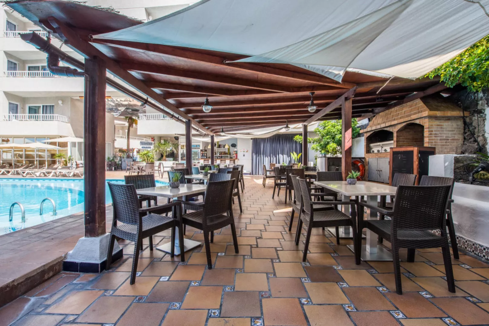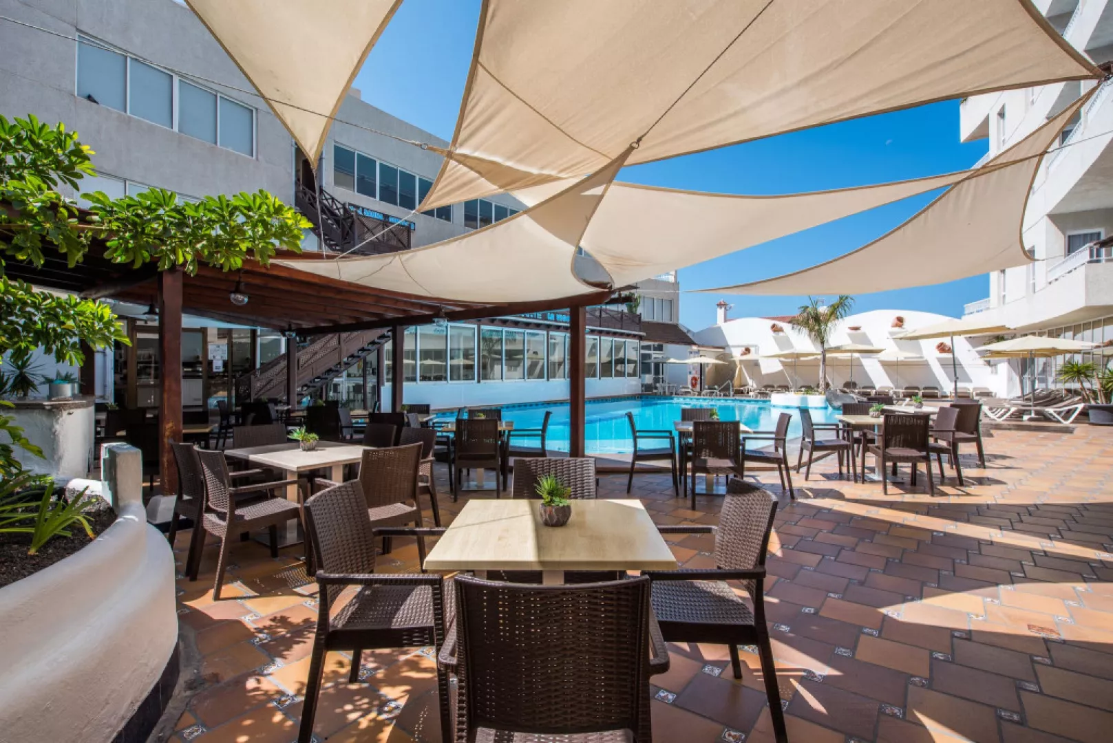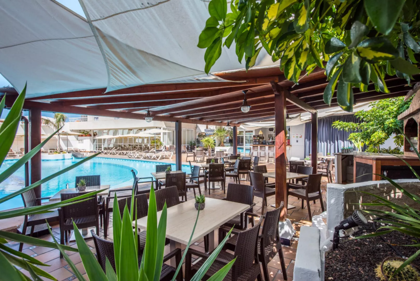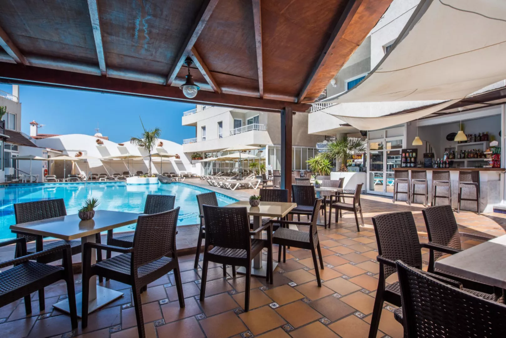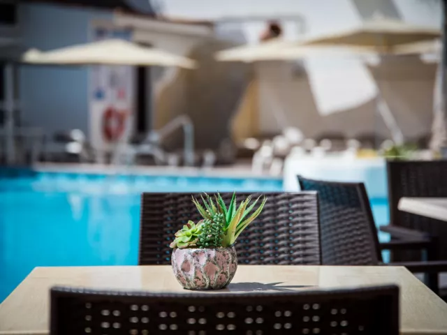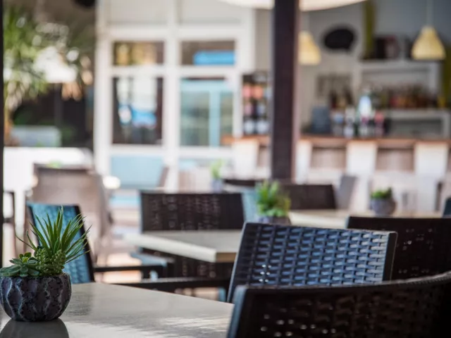 • Buffet Restaurant Začnite svoj deň chutnými raňajkami formou švédskych stolov. Uvoľnite sa a prediskutujte svoje plány na deň s rodinou. Naša reštaurácia ponúka obedy a večere so širokým výberom miestnych a medzinárodných jedál. • Snack bar Vedľa oboch bazénov na dolnom a hornom poschodí nájdete snack bar, kde sa môžete občerstviť alebo osviežiť drinkom pri kúpaní a opaľovaní. Nealkoholické nápoje, koktaily a kávové špeciality si môžete vychutnať pri stoloch alebo aj priamo na lehátku.