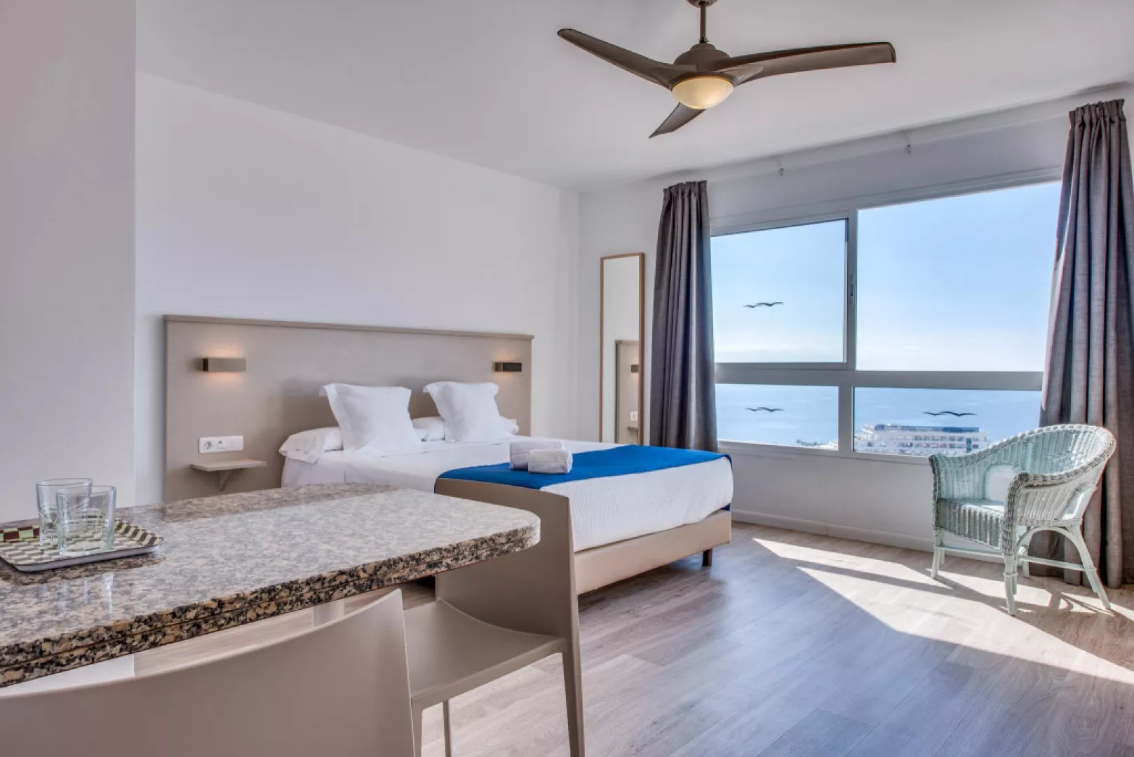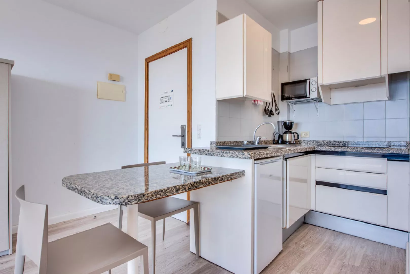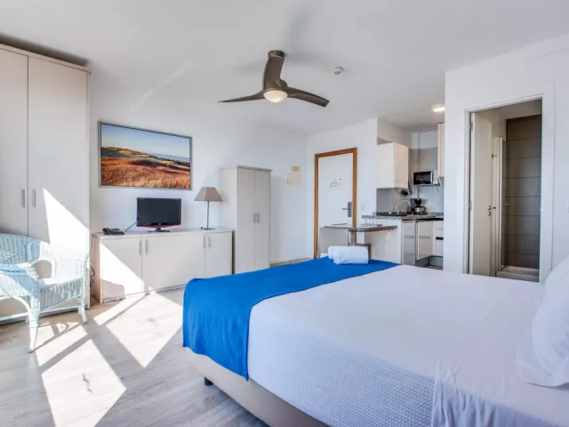 • 1-spálňový apartmán Rozloha apartmánu: 40-60 m2 Vybavenie: spálňa s manželskou posteľou 150x200 cm, obývačka s rozkladacou pohovkou, plne vybavená kuchyňa so sklokeramickou varnou doskou, chladničkou, mrazničkou, hriankovačom, rýchlovarnou kanvicou, kávovarom a mikrovlnnou rúrou, kúpeľňa so sprchou a fénom, TV s plochou obrazovkou, telefón, žehlička , trezor (za príplatok), balkón alebo terasa • 2-spálňový apartmán Rozloha apartmánu: 60-80 m2 Vybavenie: jedna spálňa s manželskou posteľou 150x200 cm, ďalšia spálňa s 2 samostatnými lôžkami, obývačka s rozkladacou pohovkou, plne vybavená kuchyňa so sklokeramickou varnou doskou, chladničkou, mrazničkou, hriankovačom, rýchlovarnou kanvicou, kávovarom a mikrovlnnou rúrou, kúpeľňa so sprchovacím kútom, vaňou a sušičom vlasov, TV s plochou obrazovkou, telefón, žehlička, trezor (za poplatok), balkón alebo terasa