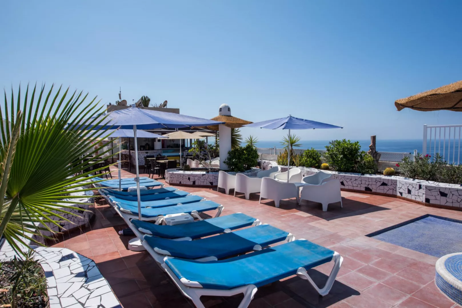 • 1 bazén na spodnej úrovni • 1 bazén na hornom poschodí s krásnym výhľadom, jacuzzi, samostatný detský bazén • 9-jamkový minigolf • Biliard • Stolný tenis • Pétanque • Detské ihrisko • Posilňovňa so saunou • Slnečná terasa s ležadlami a sprchami