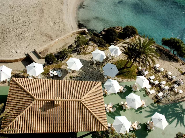 Hotel sa nachádza priamo pri verejnej pláži, ktorá je vzdialená len 20 metrov od areálu. Pláž je menšia s pozvoľným vstupom do mora a ponúka lehátka a slnečníky za poplatok. V okolí sa nachádzajú aj iné pláže ako Cala Ferrera (150 m), Cala de Esmeralda (450 m), Cala Gran (900 m), Cala Serena (1,1 km) a Cala Petita (1,4 km).