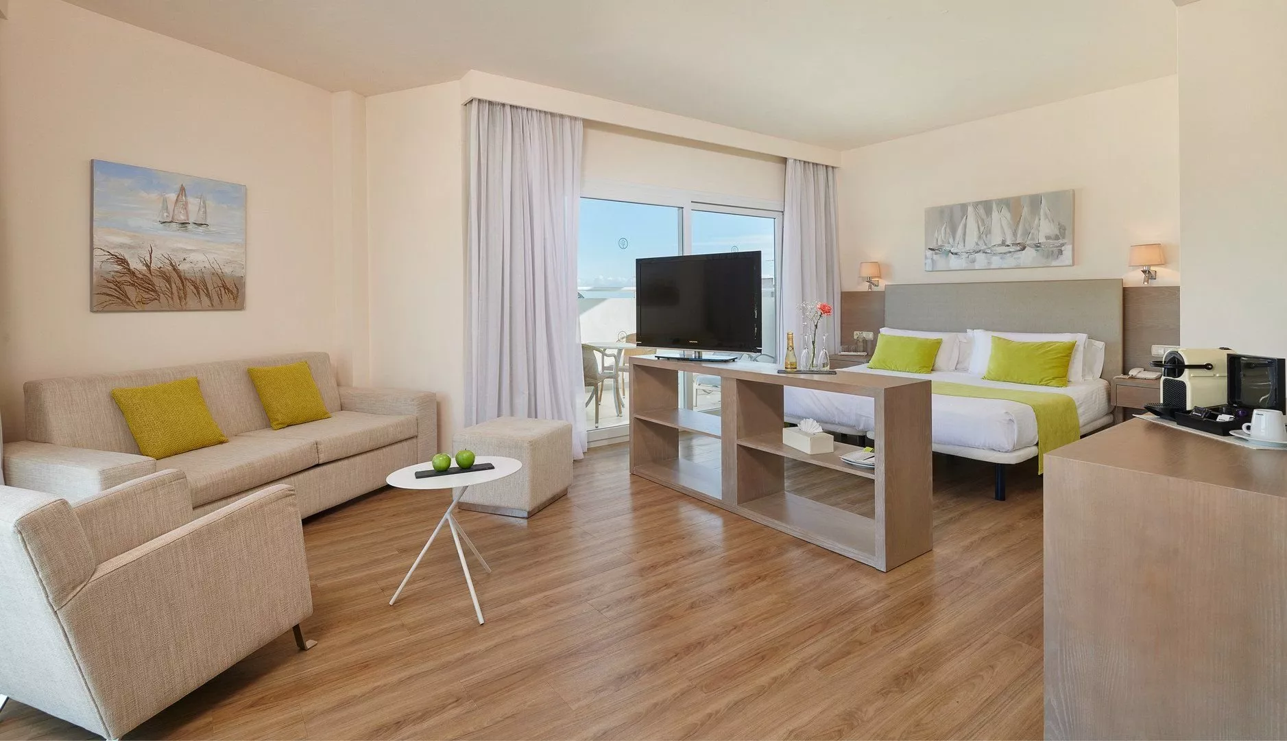 Dvojlôžkové izby s možnosťou prístelky sú vybavené vlastným sociálnym zariadením (kúpeľňa, sušič na vlasy, WC), telefónom, klimatizáciou, SAT/TV a chladničkou. Každá izba má balkón alebo terasu s výhľadom do okolia, na bazén alebo more; trezor je k dispozícii za príplatok.