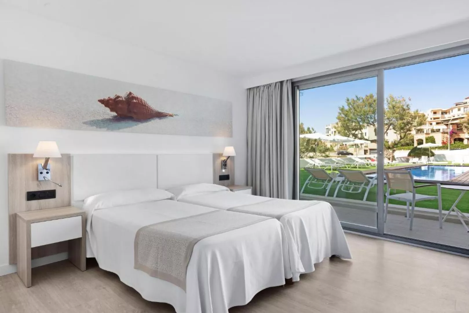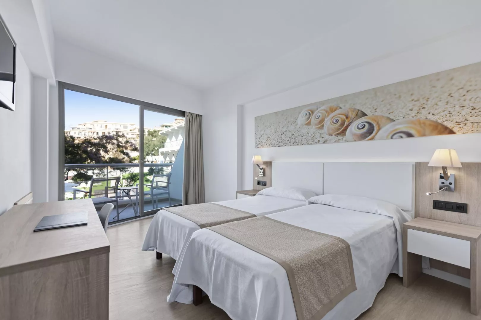 Priamo pri hoteli sa nachádza malá skalnatá zátoka Cala Lliteras, prístupná po schodoch, kde je možné vstúpiť do mora zo skaly. Známa piesočná pláž Cala Guya so pozvoľným vstupom do mora sa nachádza iba 800 metrov po pobrežnej promenáde, prístupná z mierneho kopca; ležadlá a slnečníky sú k dispozícii za poplatok.