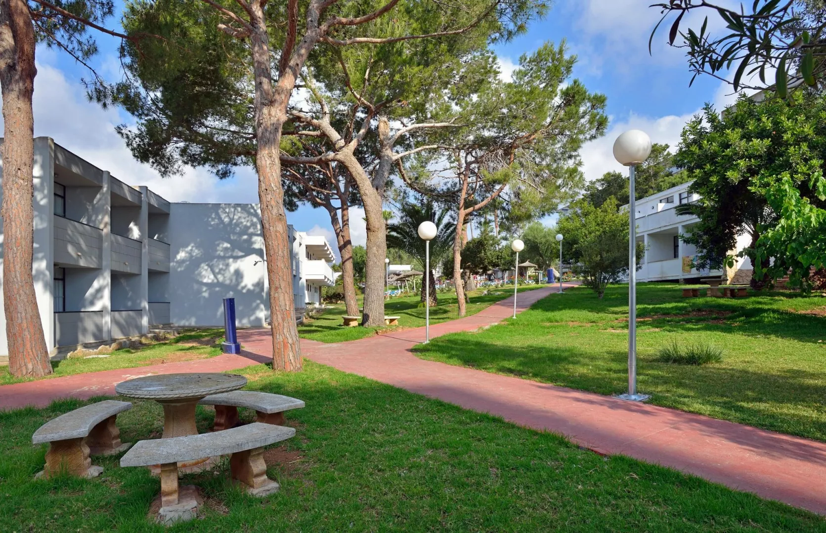 Malá piesočnato-kamienková pláž Cala Antena cca 500 z kopca. Obľúbená piesočná pláž Cala Domingo cca 1 km. Lehátka a slnečníky za poplatok.
