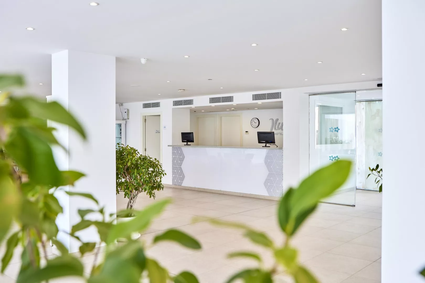192 izieb, 6 poschodí, vstupná hala s recepciou, výťah, reštaurácia, 2 bary, bazén, terasa s lehátkami a slnečníkmi zdarma.