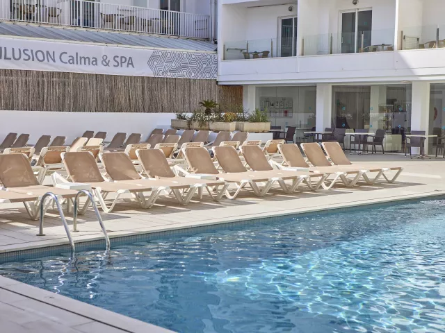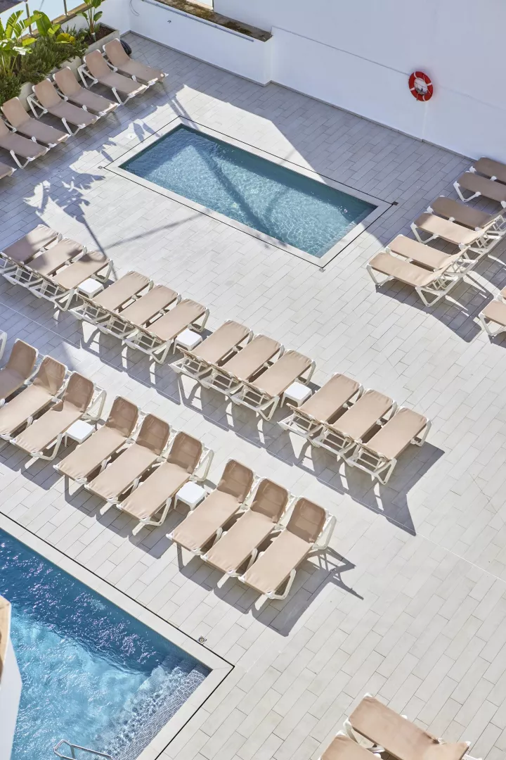 6 km dlhá piesočná pláž Playa de Palma cca 400 m, menšia piesočná pláž Cala Estancia s pozvoľným vstupom do mora cca 200 m. Lehátka a slnečníky za poplatok.