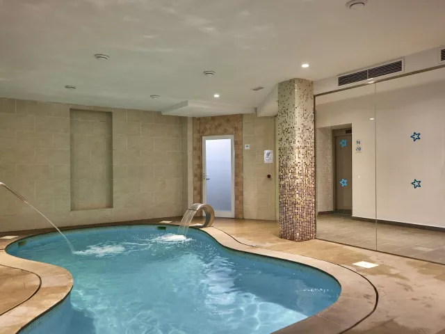 Vstup od 16 rokov Zadarmo: vnútorný bazén, jacuzzi Za poplatok: sauna, para a masáže