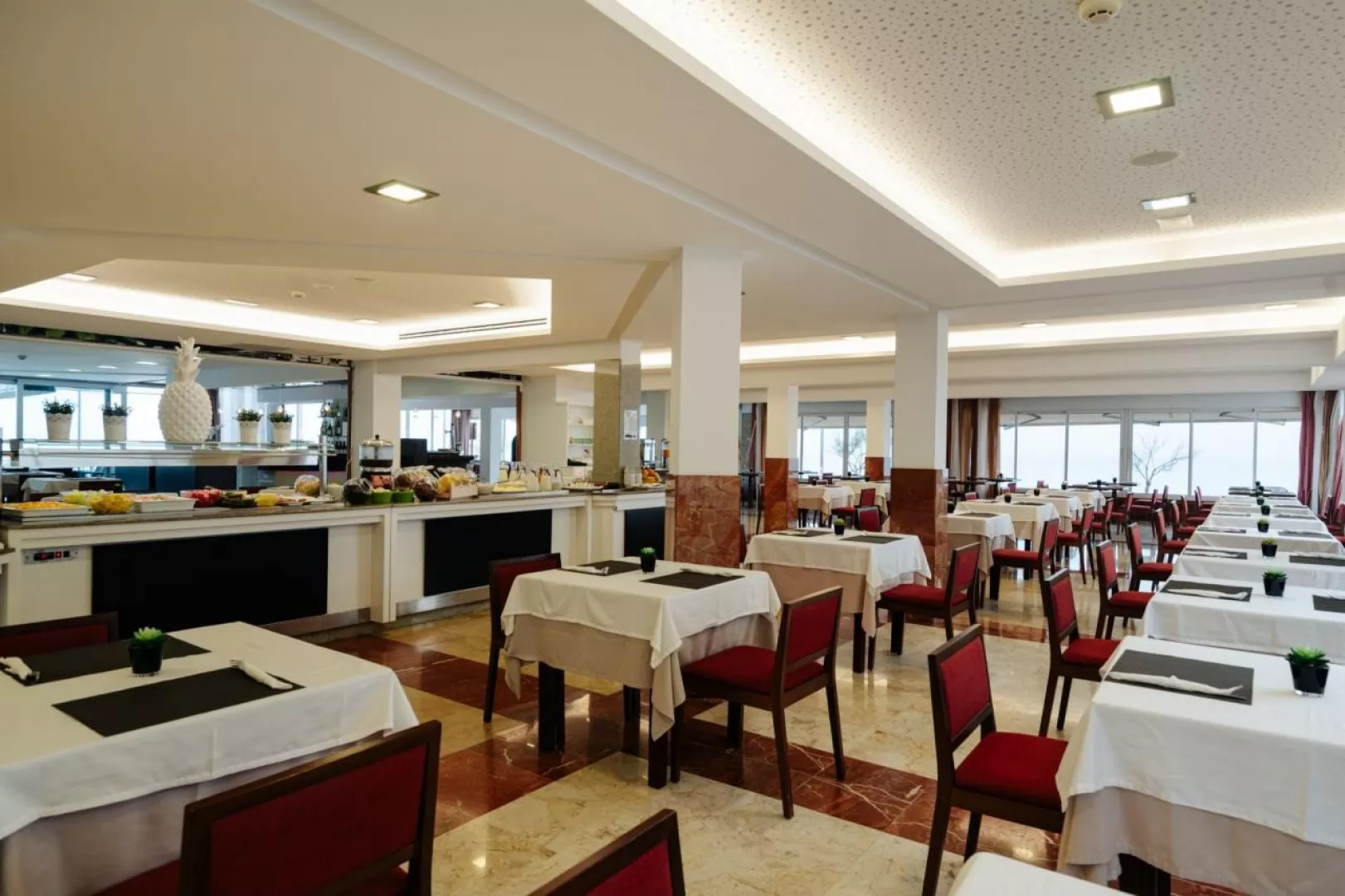 V hoteli je ponúkaná polpenzia, ktorá zahŕňa raňajky a večere formou bufetu.