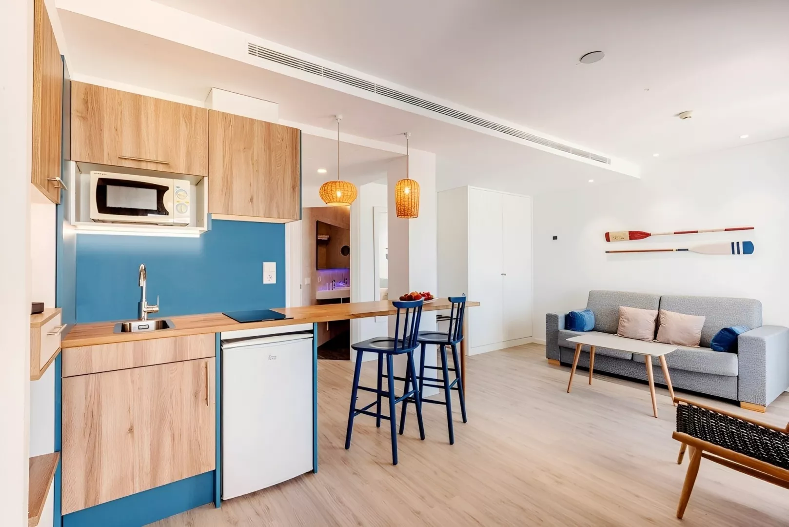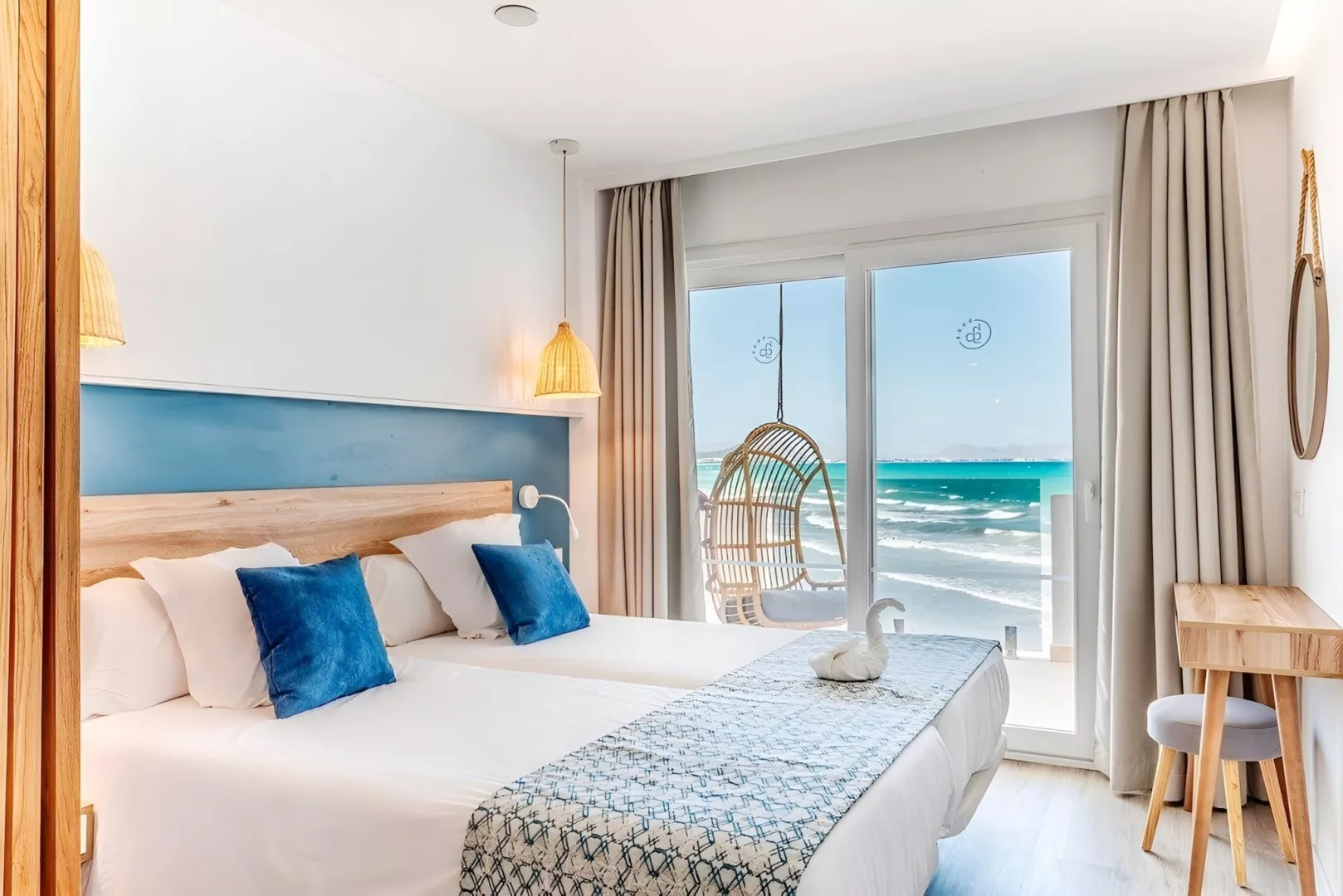 Štandardná izba je vybavená klimatizáciou, TV so satelitným príjmom, telefónom a bezplatným Wi-Fi. K dispozícii je tiež trezor (za poplatok), chladnička a vlastné sociálne zariadenie s kúpeľňou, sušičom vlasov a WC. Každá izba má balkón alebo terasu. Možnosť ubytovania v izbách s bočným a priamym výhľadom na more je za príplatok.