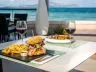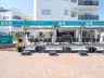 Pláž je piesočnatá a ponúka slnečníky a ležadlá za poplatok.