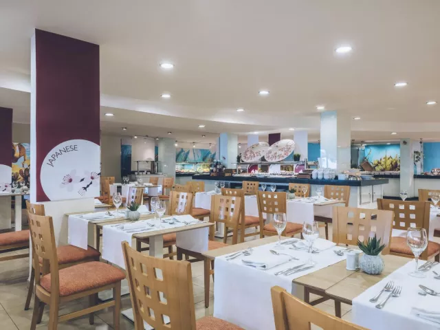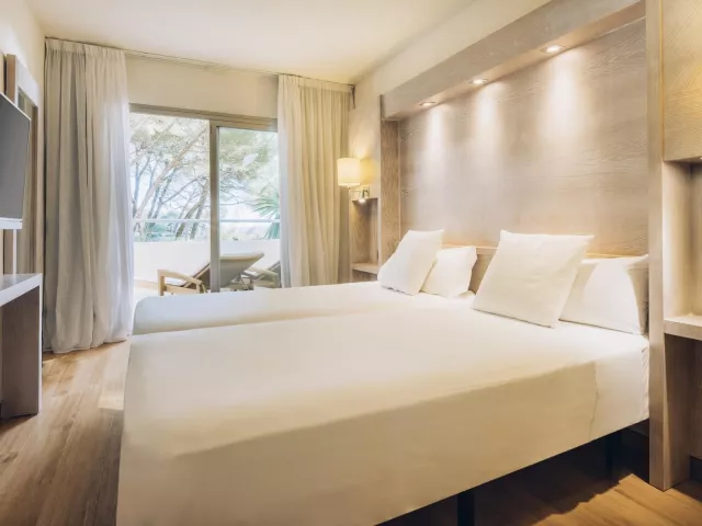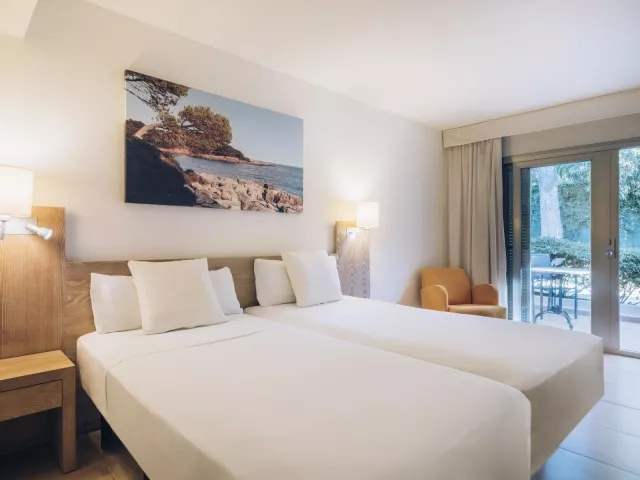 Dvojlôžková izba, typ B : kúpeľňa/WC (sušič vlasov), klimatizácia, obývacia izba s pohovkou, samostatná spálňa, TV/satelit, bezplatné Wi-Fi, minibar za poplatok, trezor za poplatok, balkón. Ostatné typy izieb (ak nie je uvedené inak, všetky izby majú vyššie uvedené vybavenie) Dvojlôžková izba, typ B, výhľad do záhrady: Dvojlôžková izba, typ B, výhľad na more: Rodinná izba, typ B : priestrannejší balkón Rodinná izba, typ B, výhľad do záhrady : výhľad do záhrady . Rodinná izba, typ B, výhľad na bazén : výhľad na bazén . Rodinná izba, typ B, bočný výhľad na more: výhľad na more: bočný výhľad na more Rodinná izba, typ B, výhľad na more: výhľad na more Suita typu B, výhľad na more Typ A : ponuka s obmedzenou kapacitou za zvýhodnenú cenu. Vybavenie izby je rovnaké ako pri type B.