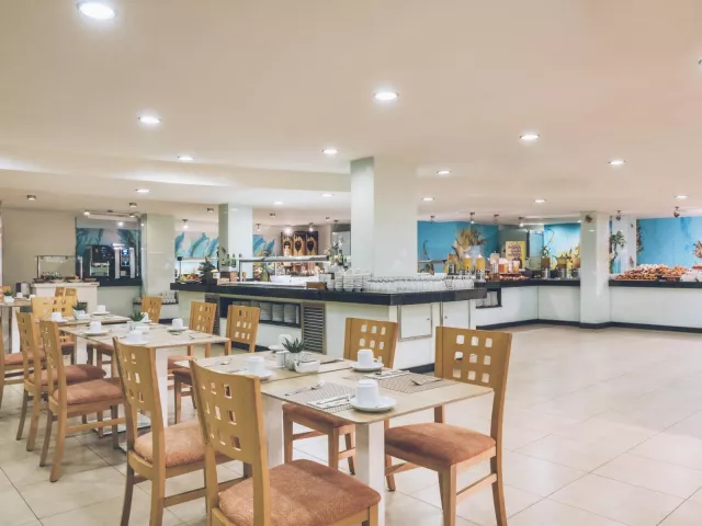 3 budovy, 202 izieb, vstupná hala s recepciou, výťah, bufetová reštaurácia, lounge bar. Bezplatné Wi-Fi pripojenie na internet v celom hoteli. V záhrade hlavný bazén, bar pri bazéne, show bar a terasa s ležadlami a slnečníkmi zdarma. Detský bazén a bazén so šmykľavkami.