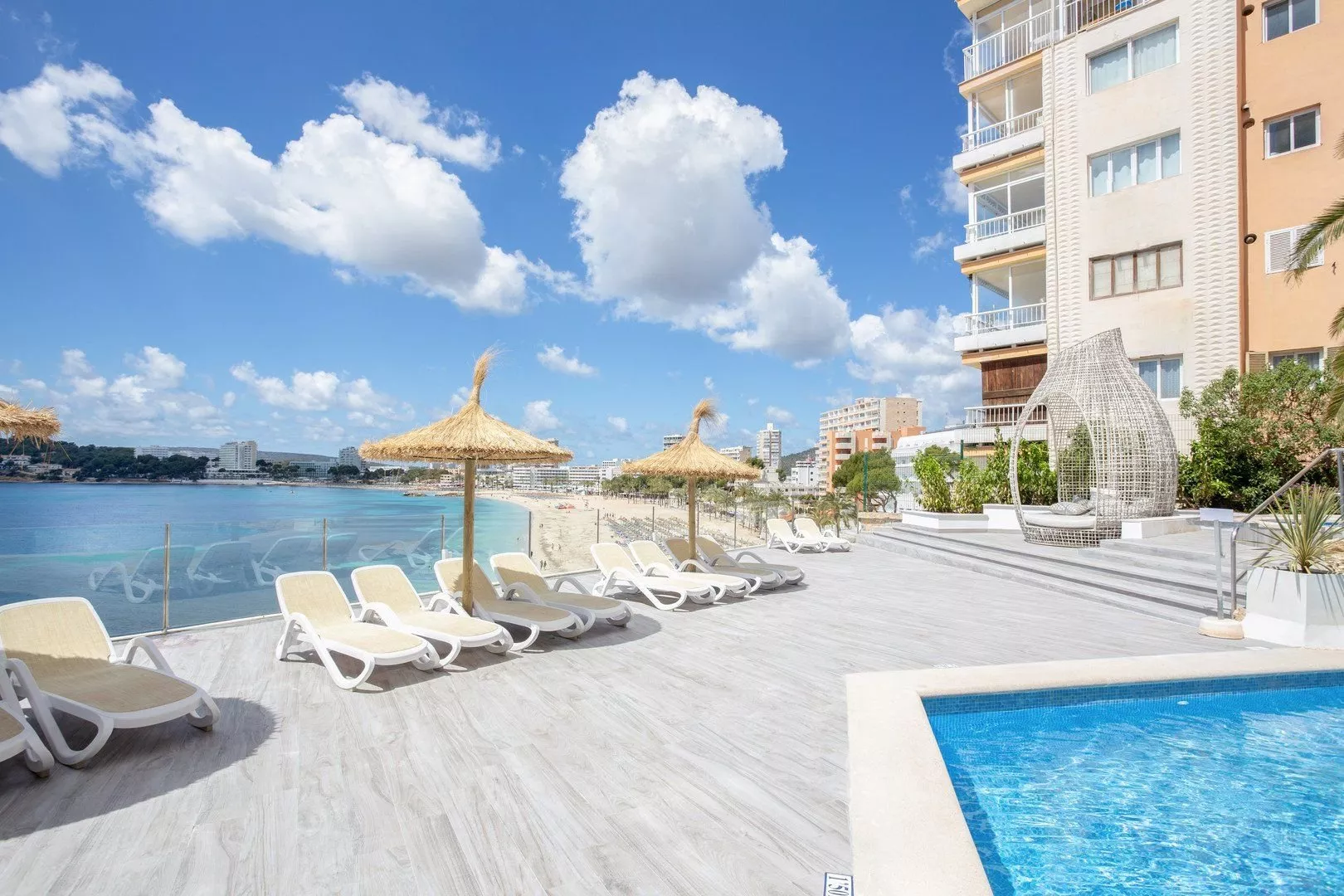 Príjemná široká pláž so svetlým pieskom sa nachádza priamo pred hotelom, pričom je dostupná výťahom alebo schodmi. Piesočnatá pláž Palmanova je vzdialená cca 500 m. Na pláži sa ponúkajú lehátka a slnečníky za príplatok.