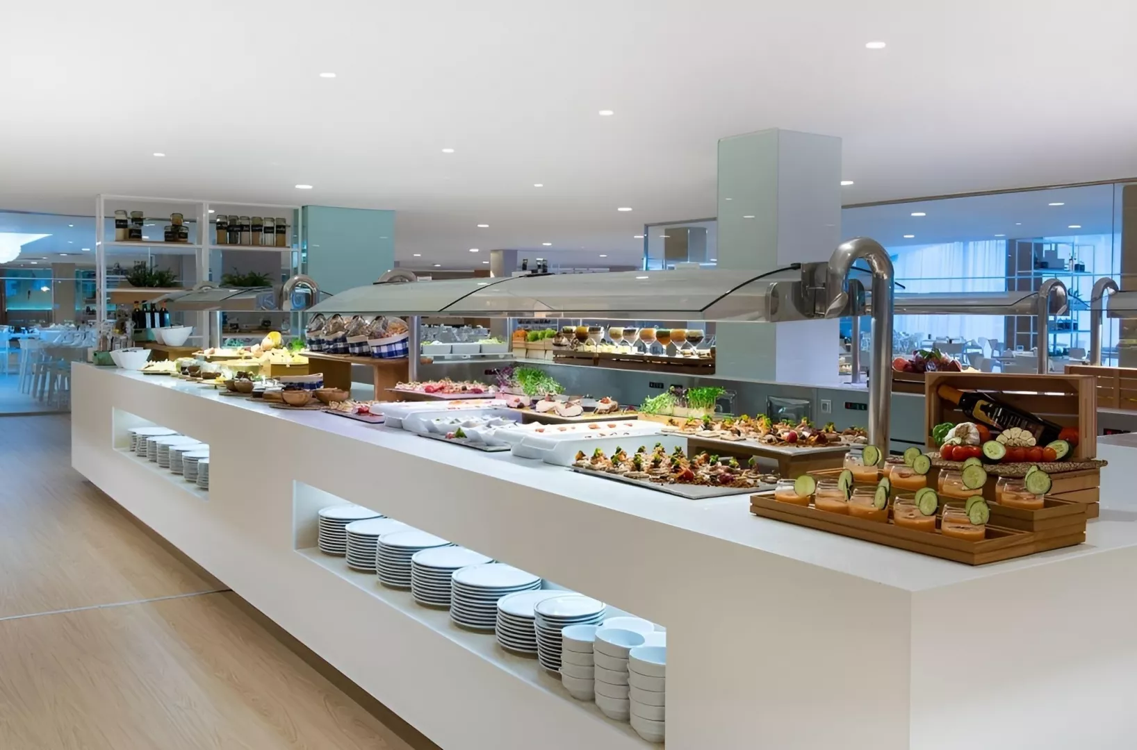 Hostia si môžu vybrať polpenziu (raňajky a večere formou bufetu) alebo all inclusive, ktorý zahŕňa raňajky, obedy a večere, ako aj ľahké občerstvenie počas dňa.