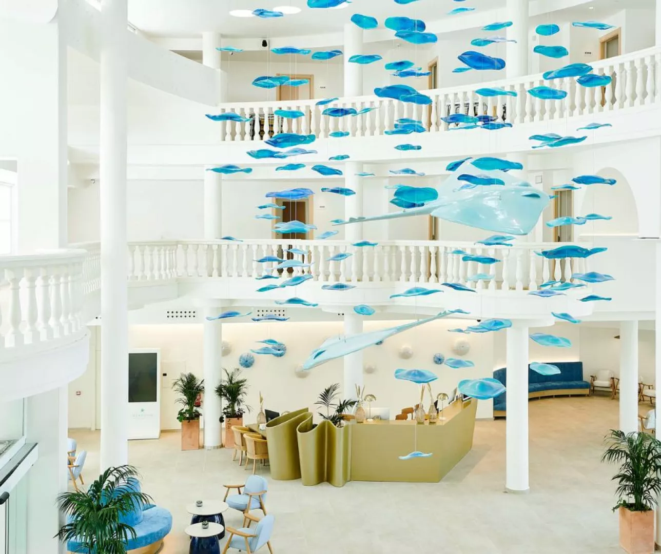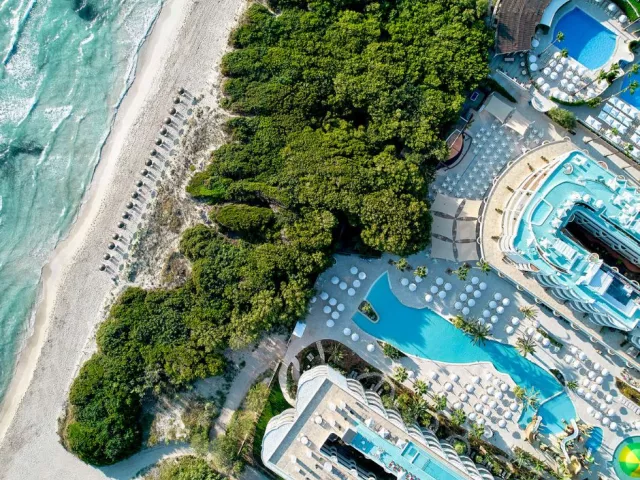 Ubytovanie pozostáva z 348 izieb rozložených v troch štvorposchodových budovách, kde je vo všetkých budovách výťah. Hotel disponuje vstupnou halou s recepciou, reštauráciou, pizzeriou, reštauráciou à la carte, barom a konferenčným centrom. V záhrade sa nachádzajú tri bazény, jacuzzi, bar pri bazéne a reštaurácia pri pláži. Pre pohodlie návštevníkov sú k dispozícii lehátka a slnečníky zdarma, osušky sú na vyžiadanie za kauciu.