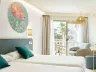 Izby sú komfortne zariadené, pričom základná dvojlôžková izba ponúka kúpeľňu/WC (so sušičom vlasov), klimatizáciu, TV/sat., telefón, minibar a trezor (obe služby za poplatok), ako aj balkón alebo terasu. K dispozícii sú aj izby s výhľadom na záhradu, bočný výhľad na more a izby s prístupom k zdieľanému bazénu.