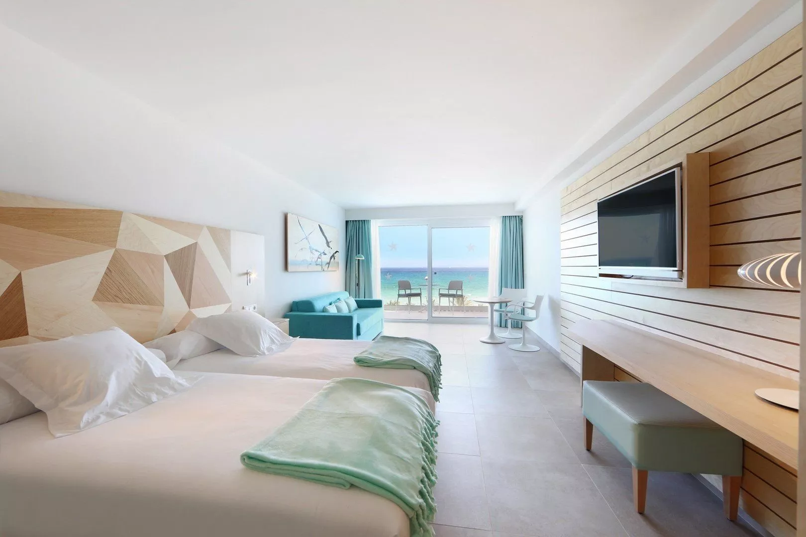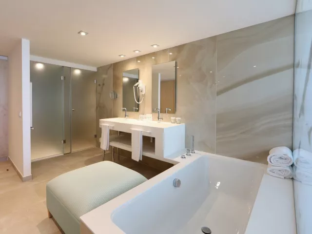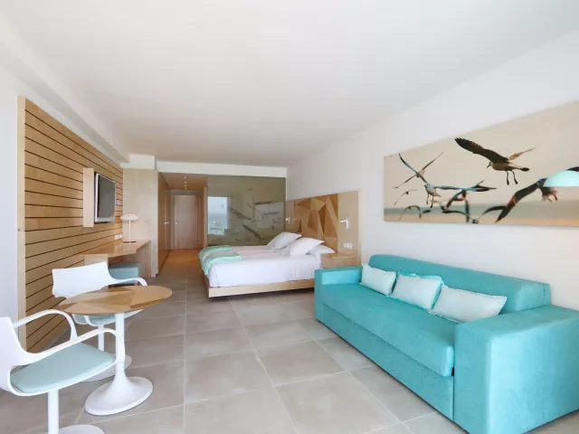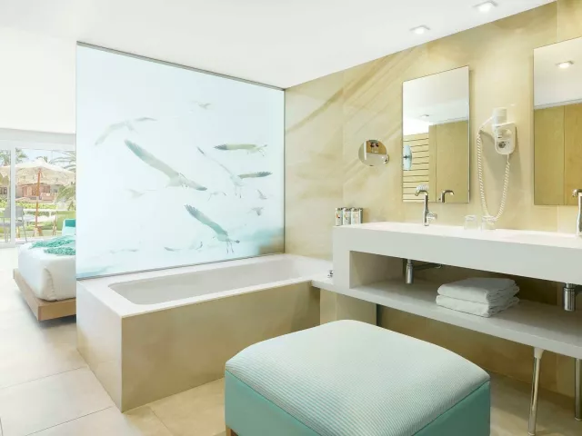 Dvojlôžkové izby sú vybavené kúpeľňou/WC (sušič vlasov), klimatizáciou, TV/sat., telefónom, minibarom (za poplatok) a trezorom (zadarmo). K dispozícii sú aj izby s bočným výhľadom na more a rodinné izby s pohovkou a výhľadom na bazén alebo more. Junior suity sú priestrannejšie, s rovnakými vybaveniami.