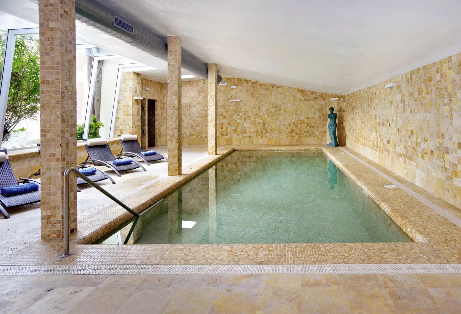 V hotelovom wellness je zadarmo k dispozícii vnútorný bazén a sauna.