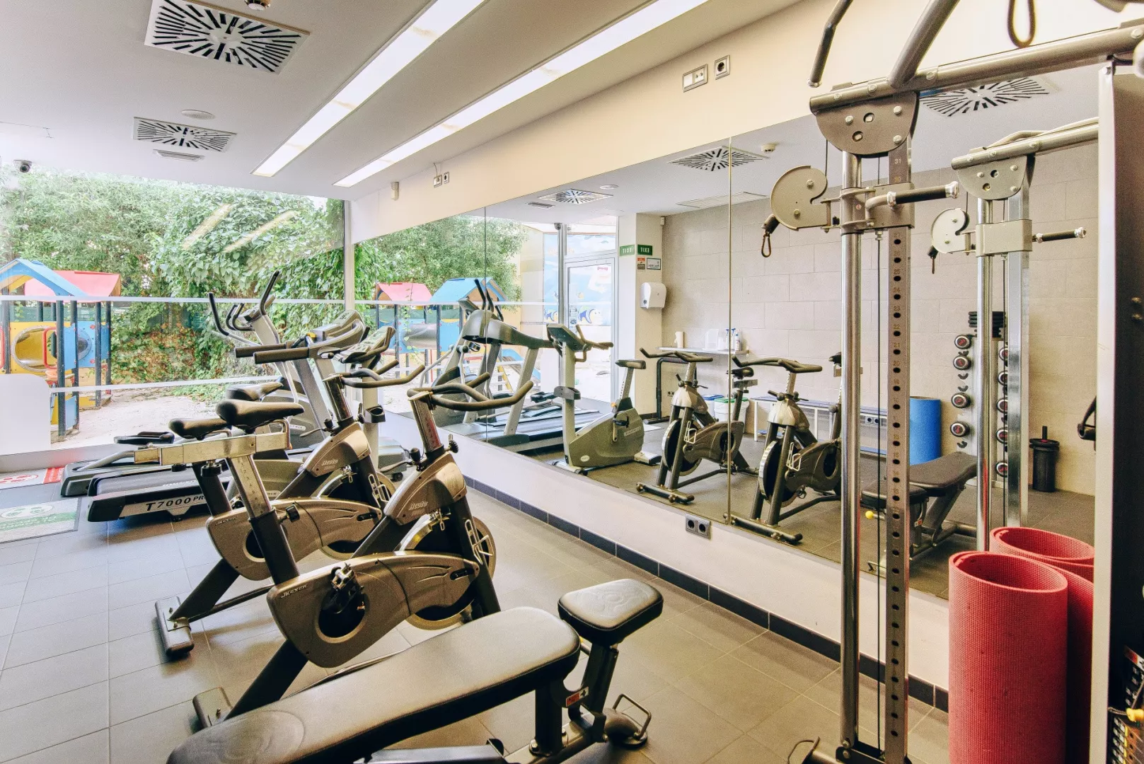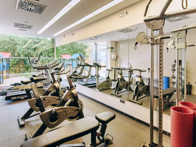 Fitness (35m2) Vonkajší vyhrievaný bazén (25m x 5m) Priestranná miestnosť pre cyklistov, servis, umývacie stanice, dielňa