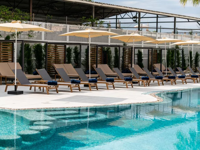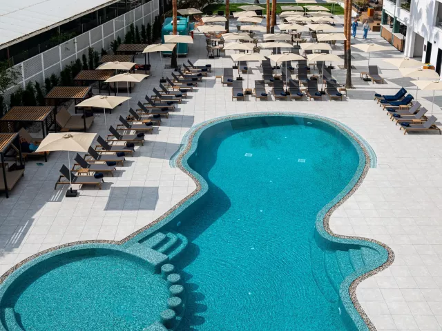 Hotel má vstupnú halu s 24-hodinovou recepciou a celkovo 208 izieb. K dispozícii je terasa s výhľadom na jazero, dva vonkajšie bazény so slanou vodou, slnečníky a ležadlá. Stravovanie zaisťuje hlavná bufetová reštaurácia a food truck / pojazdný stánok s jedlom. Pri bazéne sa nachádza bar. Bezplatné Wi-Fi pripojenie na internet je dostupné v celom hoteli, rovnako ako fitness centrum.