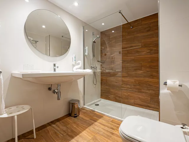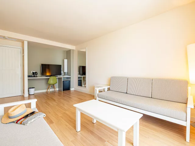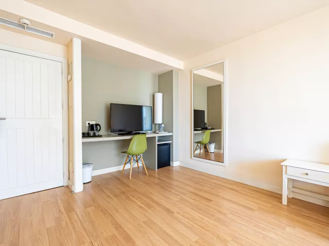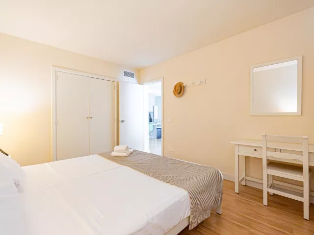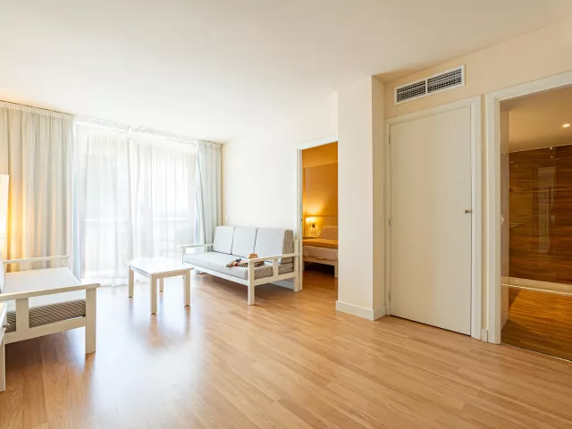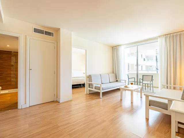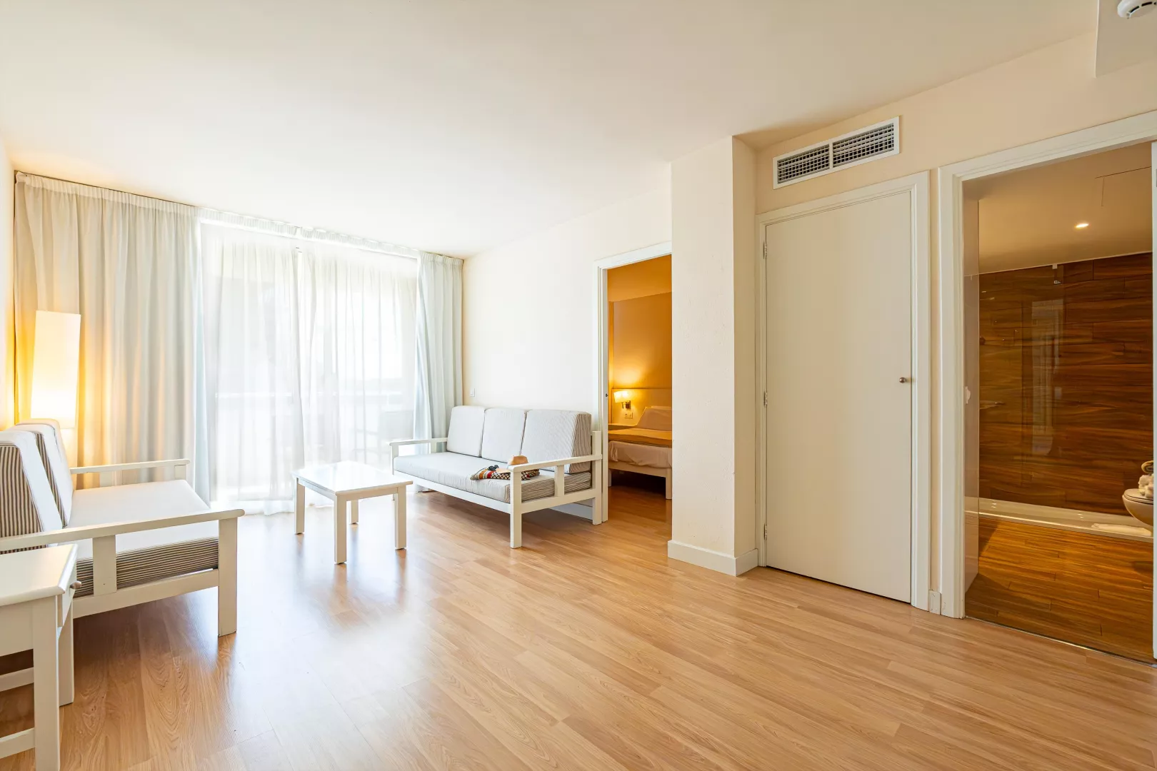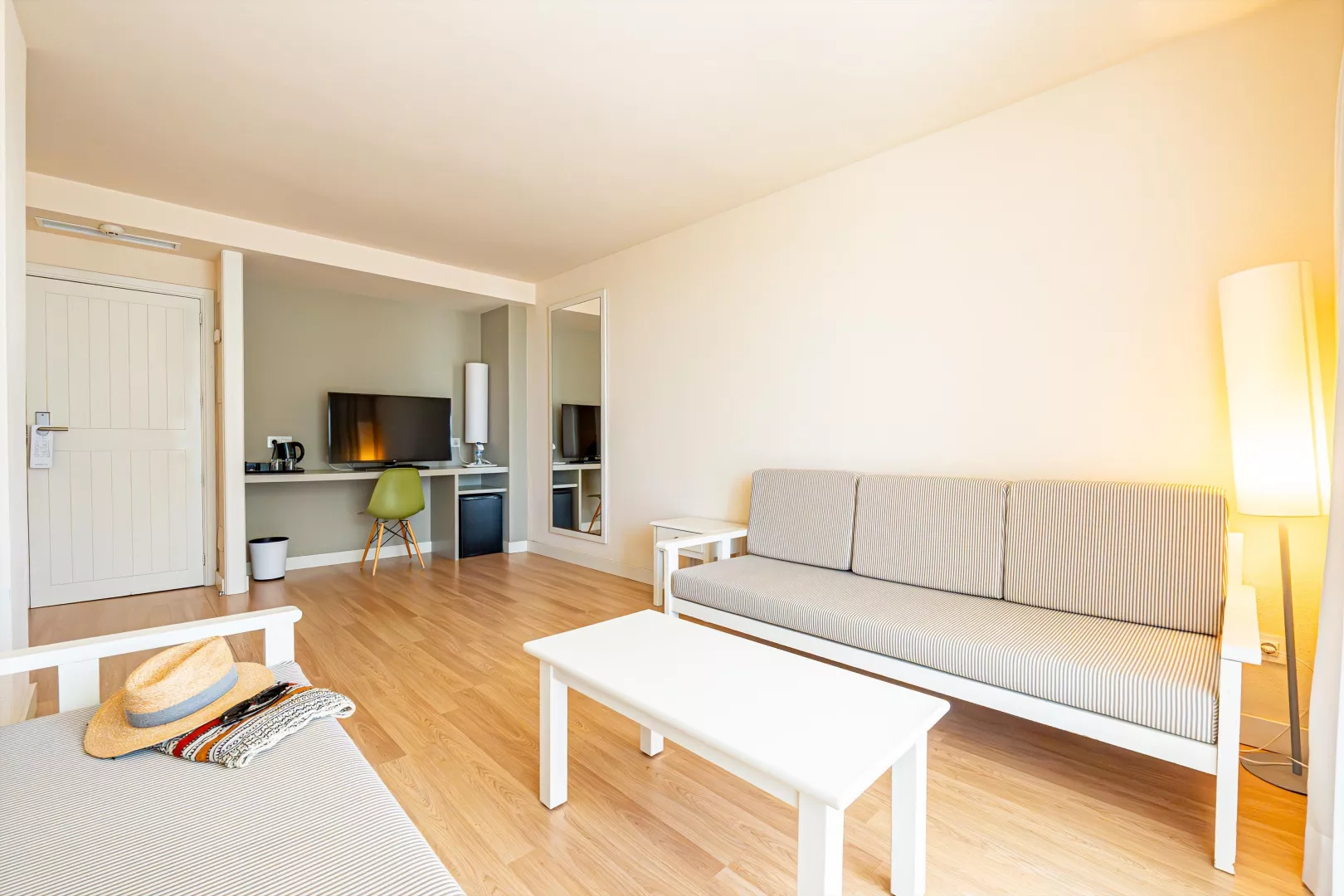 Junior Suita : kúpeľňa/WC (sušič vlasov), klimatizácia, obývacia izba s 2 pohovkami a oddelená spálňa, TV/Sat, Wi-Fi zdarma, minibar za poplatok, terasa. Ostatné typy izieb (pokiaľ nie je uvedené inak, majú izby vyššie uvedené vybavenie) Junior Suita, Výhľad bazén: priestranná izba maximálne pre 4 osoby s oddelenou spálňou, výhľad na bazén