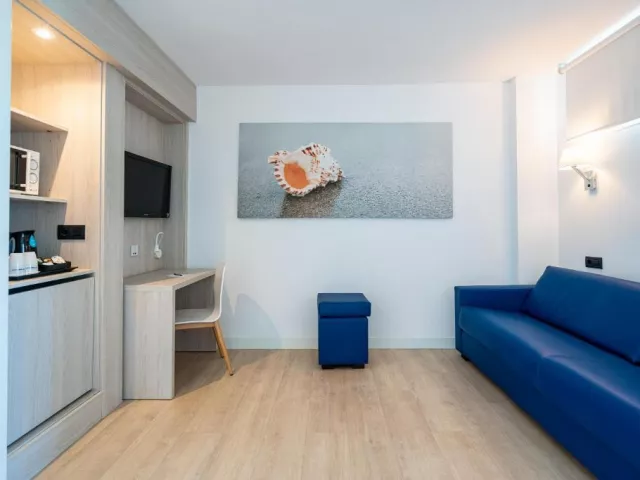 Izby sú klimatizované a vybavené kúpeľňou s WC, sušičom vlasov, telefónom, plazmovou TV, WiFi (zdarma), trezorom, kanvicou a balkónom alebo terasou. K dispozícii je Junior Suita (32 m², pre 2-4 osoby, s bočným výhľadom na more).