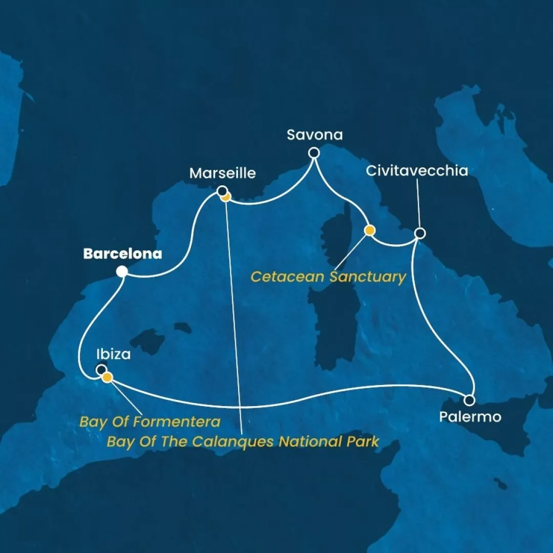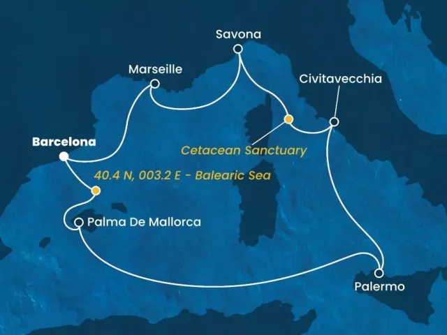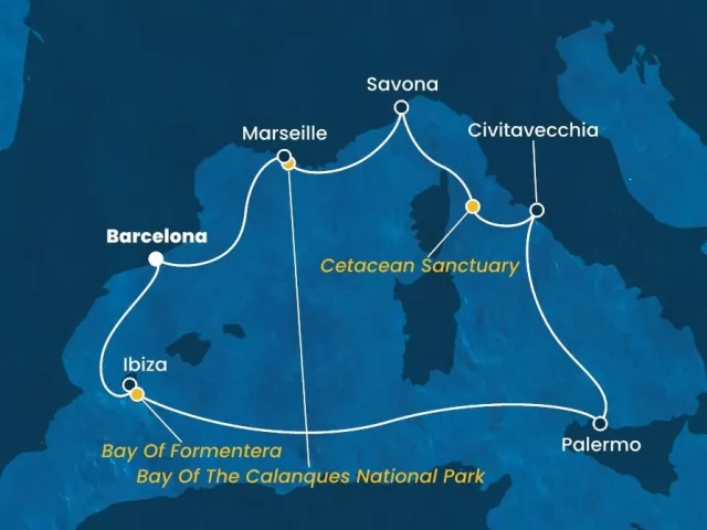 Program zájezdu je pouze informační a poskytuje tipy, co v daných destinacích navštívit. Nejedná se však o prohlídku s průvodcem. Fakultativní výlety je možné zakoupit přímo na lodi, není zde však možnost česky mluvícího průvodce. 1. DEN: Barcelona (Španělsko) cca do 18:00 Přílet z Prahy na letiště v Barceloně a následný transfer do přístavu. Nalodění na loď COSTA TOSCANA (nejpozději do 18:00). Povinná bezpečnostní schůzka 2. DEN: Ibiza nebo Palma de Mallorca Ibiza (Španělsko) cca 08:00 - 18:00 (termíny 02.09. - 21.10.2024) Baleárský ostrov Ibiza se svými nádhernými plážřemi na vás čeká 2. den plavby. Historické centrum se nachází ve stejnojmenném hlavním městě Ibiza, kde můžete navštívit čtvrti La Marine, Dalt Vila a mnohé další. Historickými památkami, které stojí za navštívení, jsou hrad (Castle of Ibiza), katedrála a muzeum. Po procházce městem můžete strávit čas na jedné z oblíbených pláží tohoto ostrova. Palma de Mallorca (Španělsko) cca 08:00 - 18:00 (termíny od 21.10.2024) Palma de Mallorca je hlavním městem Baleárských ostrovů. Jednou z největších dominant města je určitě mallorská gotická katedrále Panny Marie – La Seu. Společně se vstupem do katedrály si můžete koupit také vstup na terasy katedrály, odkud je nádherný panoramatický výhled na město. Přímo pod katedrálou se nachází překrásný park Mar (Parc de la Mar) se slaným jezerem a fontánou. V blízkosti katedrály stojí maurský palác Almudaina, ve kterém můžete zajít do historického muzea, část tohoto paláce je nadále oficiálním sídlem španělského krále. Staré město čítá mnoho malebných uliček se spoustou kaváren, restaurací a obchůdků, avšak centrem je náměstí Plaza Mayor, na kterém se často konají kulturní akce. Na okraji Palmy de Mallorcy se nad městem tyčí gotický hrad Bellver, který dříve sloužil jako rezidence královské rodiny, následně jako vězení a nyní se zde nachází městské muzeum. 3. DEN: Na moři Třetí den vás čeká celý den na lodi, během kterého můžete objevovat, co loď COSTA TOSCANA nabízí. Můžete strávit den na lehátku u bazénu nebo se zúčastnit programu s animátory. Dále vás může nalákat k relaxaci Spa centrum nebo pro ty aktivnější je na lodi fitness centrum. Na lodi jsou také rozmístěny salónky s živou hudbou nebo divadlo, kam můžete večer zamířit na pěvecké a taneční představení. 4. DEN: Palermo (Itálie) cca 08:00 - 16:30 Palermo je krásné hlavní město italské Sicílie, jehož architektura ukazuje arabské, normanské, barokní a secesní vlivy. Největší dominantou města je velkolepá palermská katedrála, která díky svým minulým přestavbám a renovacím je nyní kombinací mnoha architektonických stylů. Nedaleko od katedrály se rozkládá Palazzo dei Normanni neboli Palác Normanů. Tento královský palác je jedním z nejstarších v Evropě a sloužil dříve jako hlavní sídlo sicilských králů. Dále doporučujeme zajít na náměstí Piazza Bellimi, kde se nachází La Martorana (katedrála Panny Marie Admirálské), která je také poznamenána několika různými styly. Kousek od La Martorana můžete vidět slavné fontány Pretoria. Další památkou, kterou v Palermu nemůžete vynechat je kaple Capella Palatina, která je zdobena zlatem, drahými kameny a mozaikami. 5. DEN: Civitavecchia / Řím (Itálie) cca 08:30 - 19:00 Pátý den se připravte na bohaté kulturní centrum a hlavní město Itálie – Řím. Bohužel Řím nemá přístav, tudíž loď kotví v přístavním městě Civitavecchia, ze kterého se do Říma dostanete vlakovou nebo autobusovou dopravou. Řím má bohatou historii a opravdu mnoho míst a památek, které můžete navštívit. Mezi nejznámější patří určitě proslulé Koloseum, ve kterém dříve probíhaly například gladiátorské zápasy. Dále můžete vidět pamětihodnosti jako jsou: Pantheon, Forum Romanum, fontána di Trevi, Andělský hrad, Lateránská bazilika, Španělské schody, bazilika Panny Marie Sněžné, náměstí Piazza Navona a mnoho dalších. 6. DEN: Savona (Itálie) cca 08:30 - 18:00 Savona, severoitalské město, jehož historická část leží v okolí přístavu. Nejproslulejší památkou Savony je katedrála Cattedrale dell'Assunta, která byla postavena na konci 16. století. Další dominantou je Torre Leon Palcaldo, věž, která je poslední dochovanou částí starověkých zdí. Jedno ze savonských muzeí se nachází v pevnosti Fortezza del Priamar, která dříve sloužila jako vězení a je odtud krásný panoramatický výhled. Další slavnou budovou je palác Palazzo Gavotti ze 17. století. 7. DEN: Marseille (Francie) cca 08:30 - 18:30 Město Marseille ve Francii vás čeká sedmý den. Je druhým největším městem Francie hned po Paříži a hlavním městem Provence. Historické a kulturní centrum se však nachází poměrně daleko od přístavu, proto doporučujeme využít převozných autobusů. Hlavní centrum Marseille se rozkládá v malé zátoce známé jako „Vieux-Port“ (Starý přístav), který je obklopený restauracemi a stánky se suvenýry. Vstup do starého přístavu tvoří dvě pevnosti, kterými jsou St. Jean a St. Nichola. Avšak největší dominanta Marseille je tyčící se nad městem bazilika Notre-Dame de la Garde, která je vystavěna v románsko-byzantském stylu a je odtud nádherný výhled na celé město. Dále stojí za to vidět římskokatolickou katedrálu La Major nebo si zajít do Muzea evropských a středomořských civilizací. Pokud budete chtít, můžete se také dojít vykoupat na pláž Catalans (Plage des Catalans), která se nachází blízko starému přístavu a je odtud krásný výhled na zátoku Castillo. 8. DEN: Barcelona (Španělsko) cca od 08:00 Poslední den budete mít možnost navštív