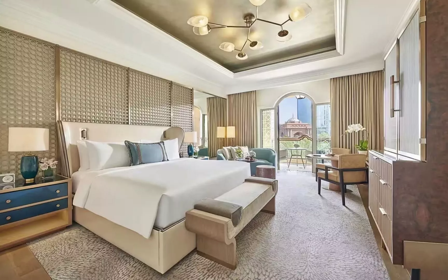 Hotel Emirates Palace, Mandarin Oriental Abu Dhabi sa nachádza v pohodlnej vzdialenosti od Abu Dhabi corniche, vládnych budov a nákupných možností, pričom najbližšia nákupná galéria Marina Mall je cca 5 minút jazdy taxíkom. Hotel sa vyznačuje rozľahlým areálom, ktorý poskytuje pokojné prostredie, približne 40 km od letiska AUH a 160 km od letiska DXB v Dubaji.