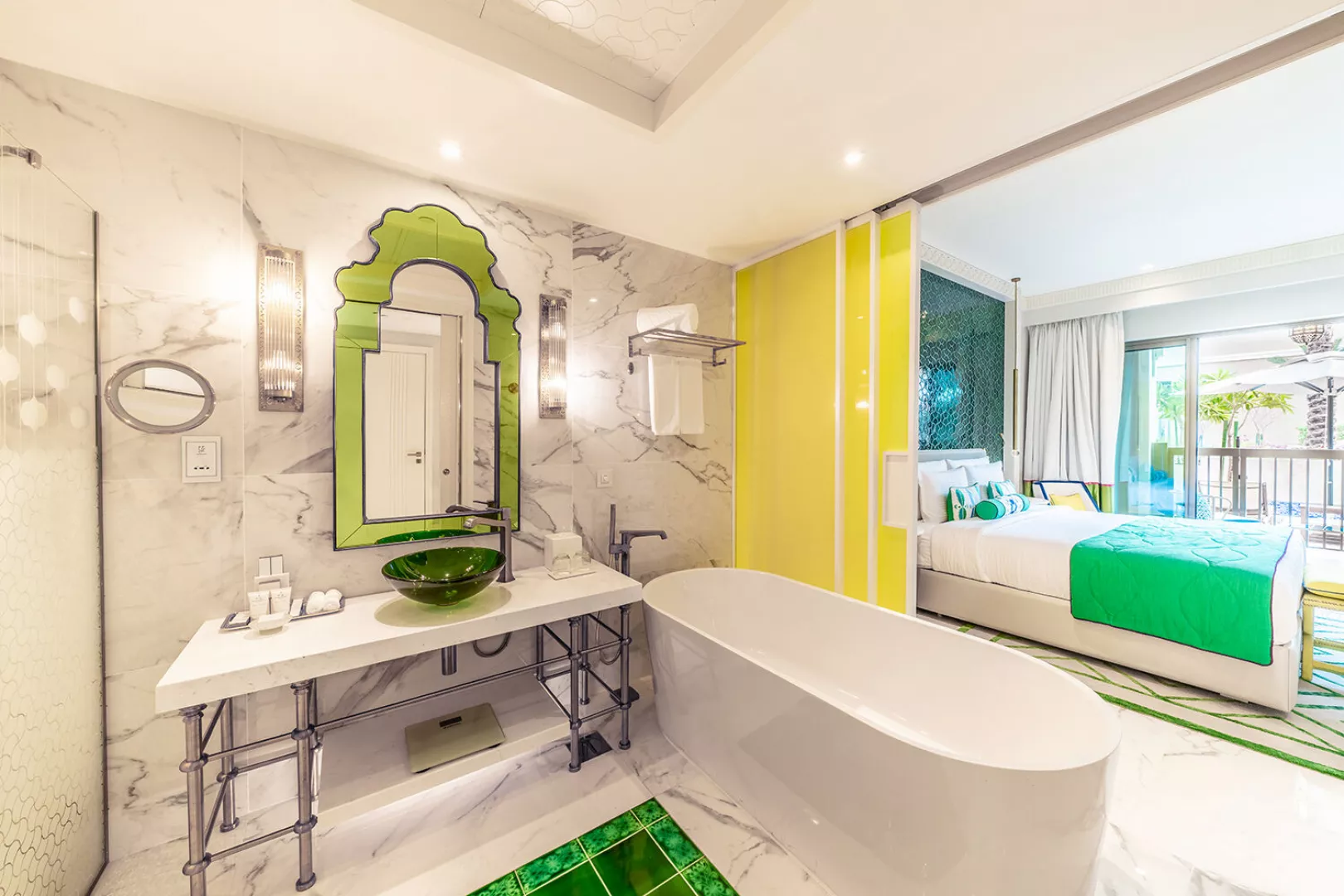 Areál hotela disponuje 288 izbami a apartmánmi, 12 vílami, 4 reštauráciami á la carte, 7 barmi, konferenčnými miestnosťami, súkromnou plážou a množstvom možností zábavy ako je aquapark pre deti, fitness centrum a wellness s rôznymi procedúrami.