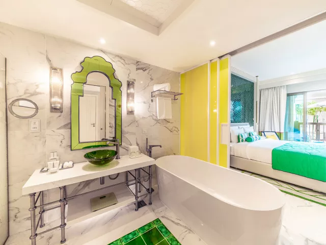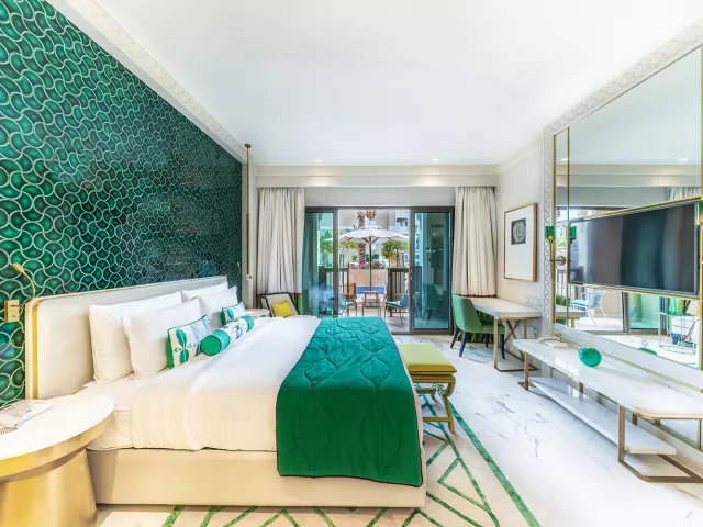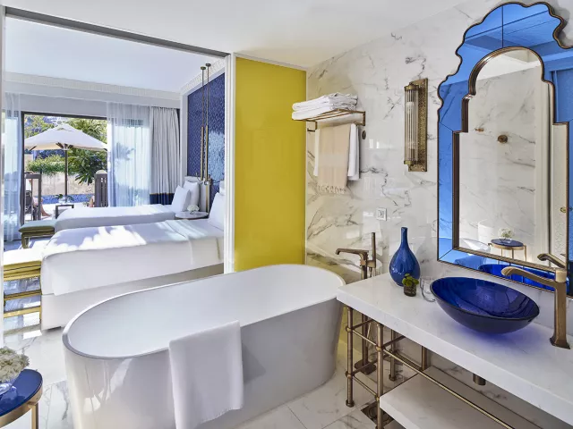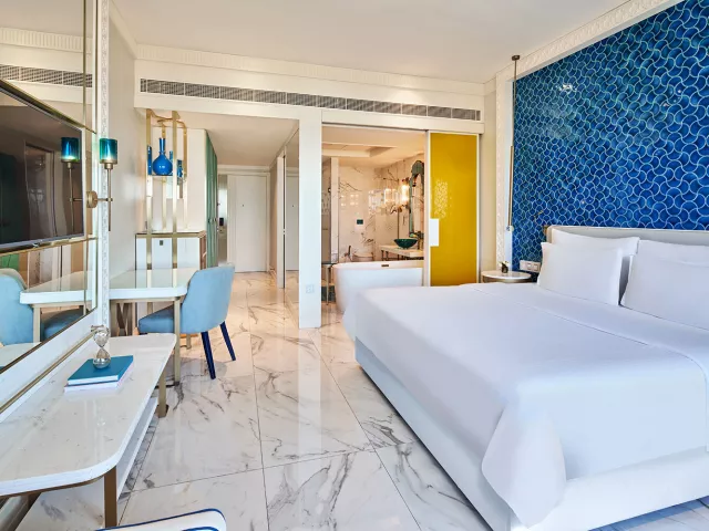 Hotel ponúka rôzne typy izieb, vrátane Deluxe izieb s výhľadom do záhrady alebo na more a priestranných apartmánov s oddelenými obývacími a spacími časťami. Vybavenie izieb zahŕňa klimatizáciu, minibar, TV, wifi a balkón.